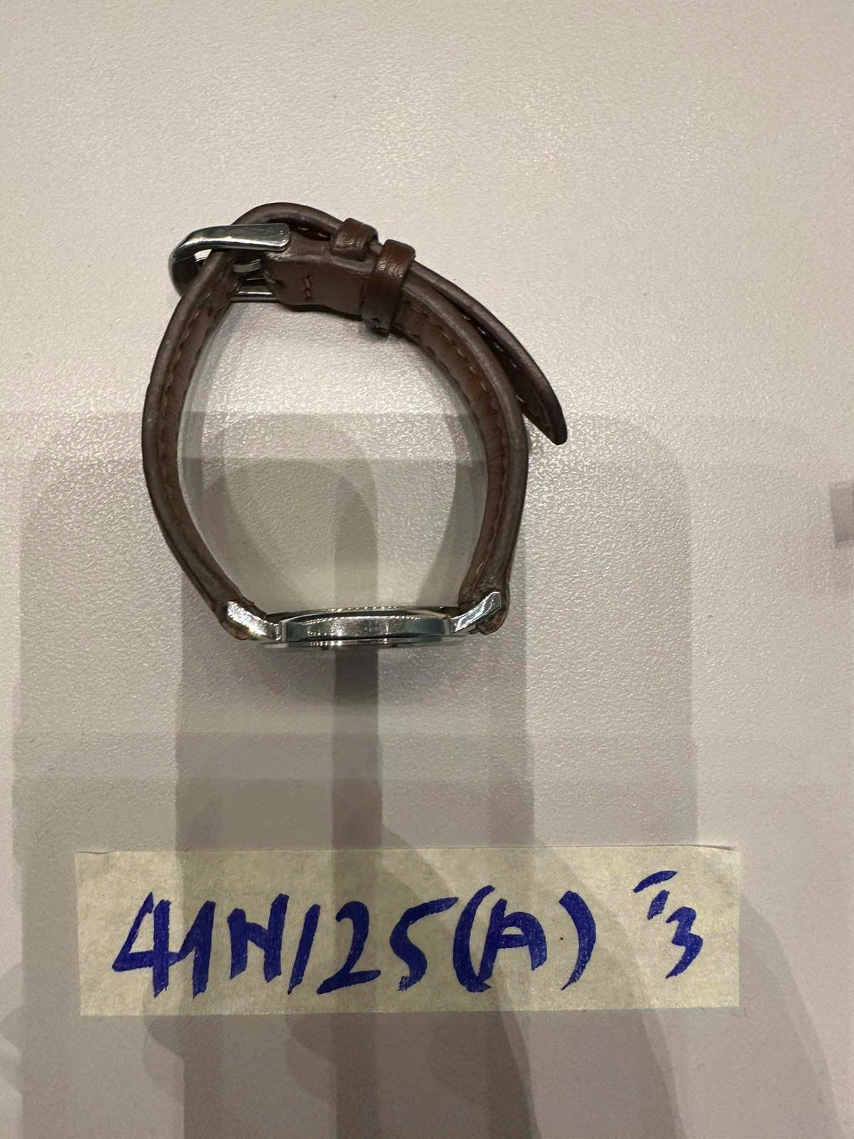 Ngày tiếp nhận: 22/9/2025 Mã hồ sơ: 41N2025A Mô tả: 01 đồng hồ mặt tròn màu trắng Rolex, dây da nâu. |