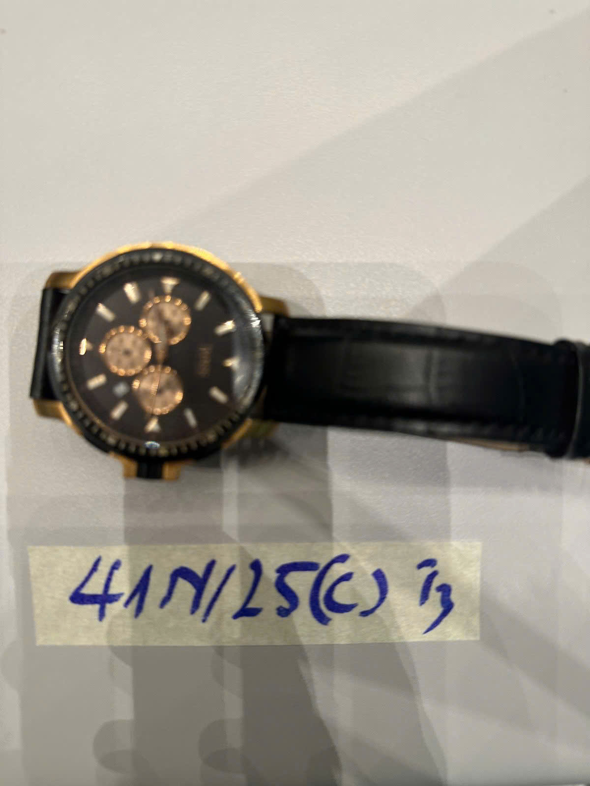 Ngày tiếp nhận: 22/9/2025 Mã hồ sơ: 41N2025C Mô tả: 01 đồng hồ mặt tròn đen BOSS dây da đen. |