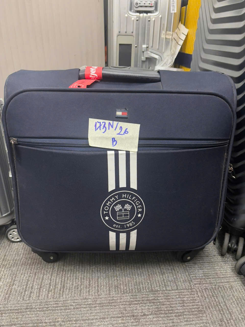 Ngày tiếp nhận: 31/01/2026 Mã hồ sơ: 173N2026B Mô tả: 01 vali màu đen có chữ TOMMY HILFIGER, bên trong có 01 quạt mini màu den, 01 cây dù có hộp đựng màu xanh da trời họa tiết hoạt hình, 01 chụp tai màu xanh da trời, một số quần áo và giày dép. |