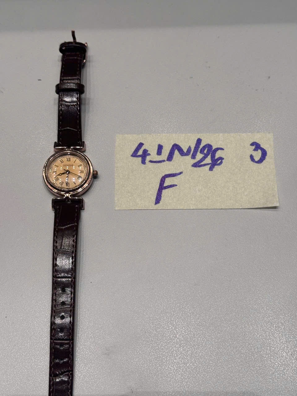 Ngày tiếp nhận: 31/01/2026 Mã hồ sơ: 41N2026F-T3 Mô tả: 01 đồng hồ mặt tròn, mặt kim loại màu vàng có chữ GOSSIE, dây da màu đen. |