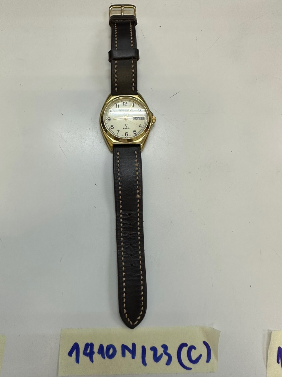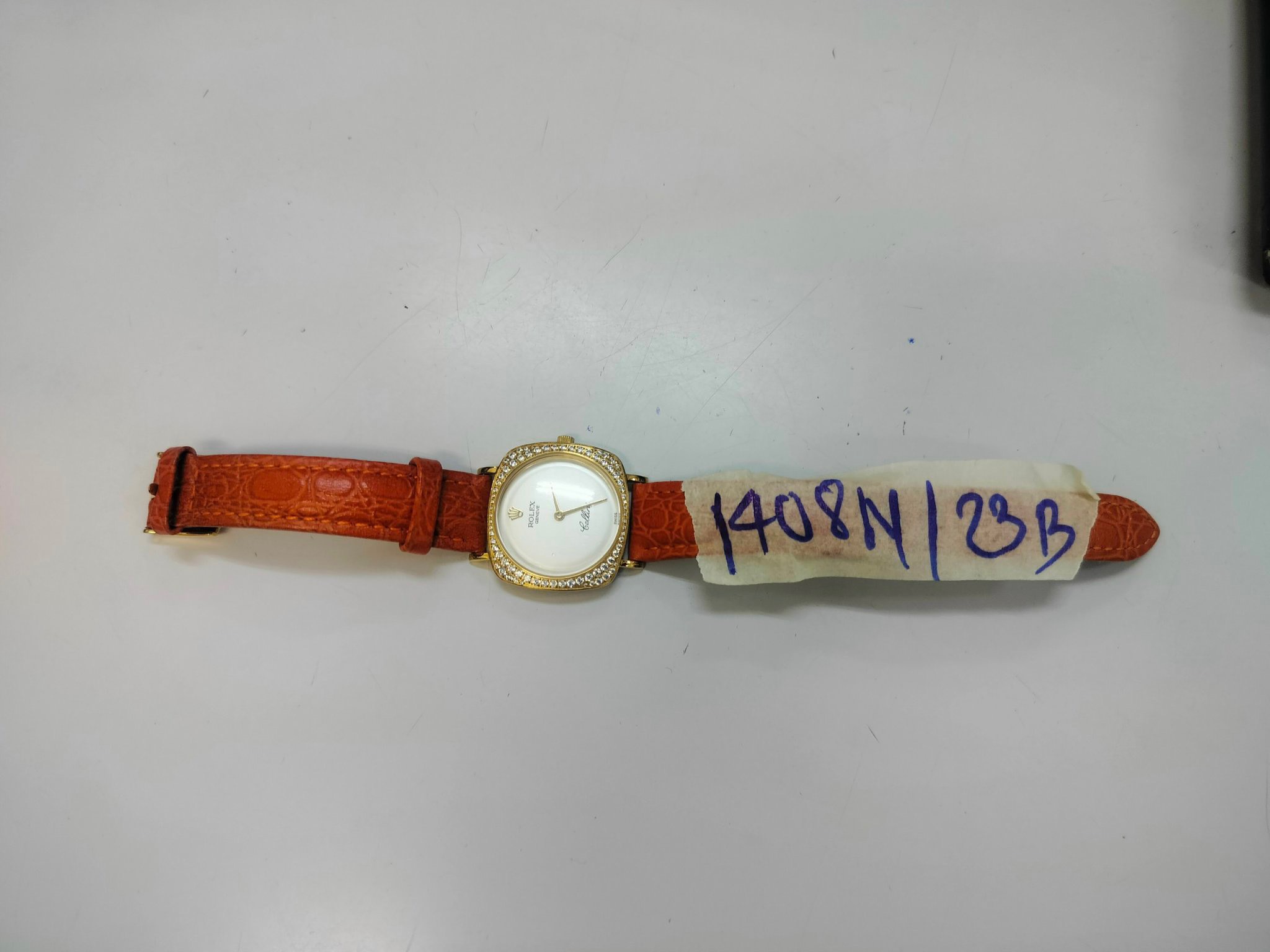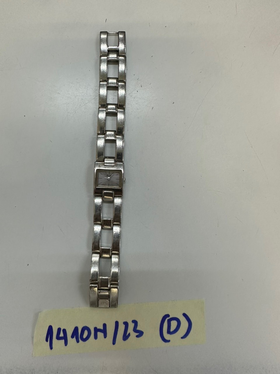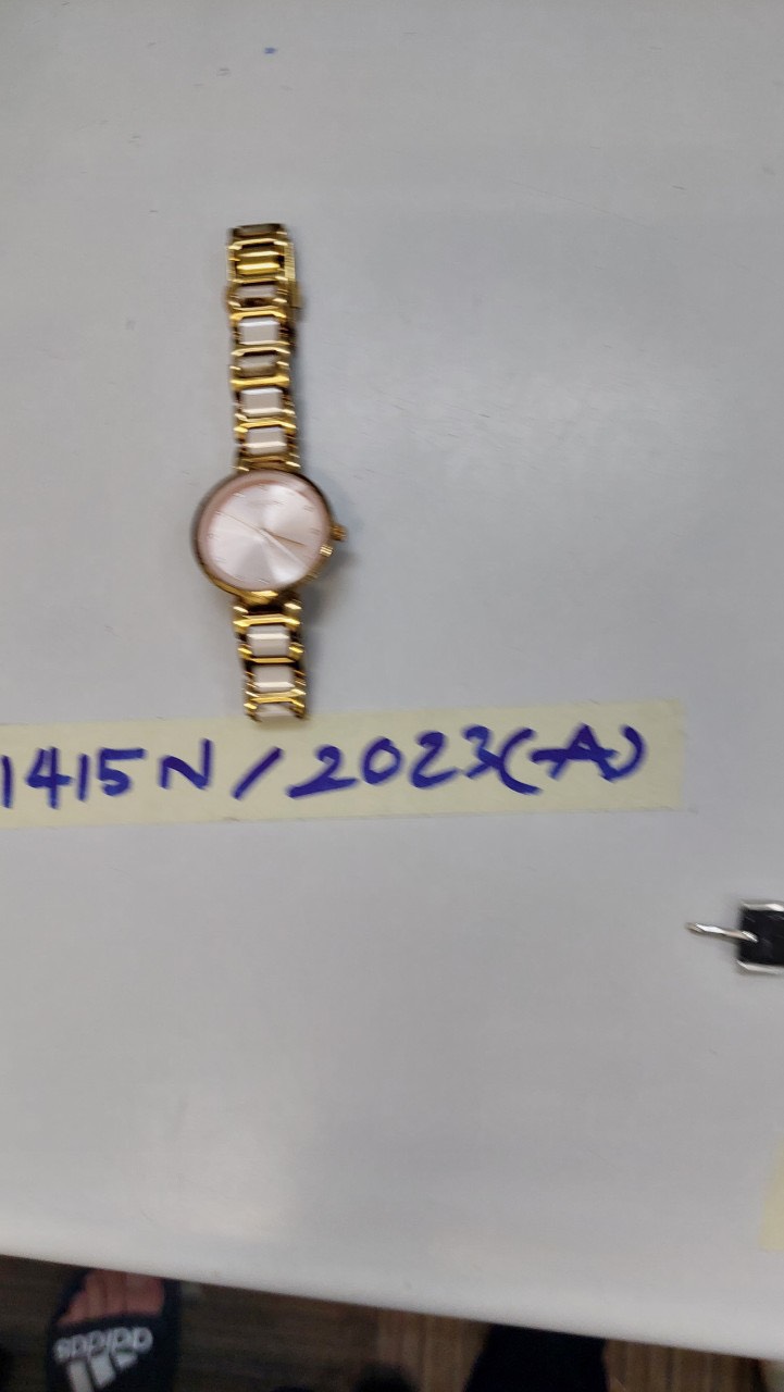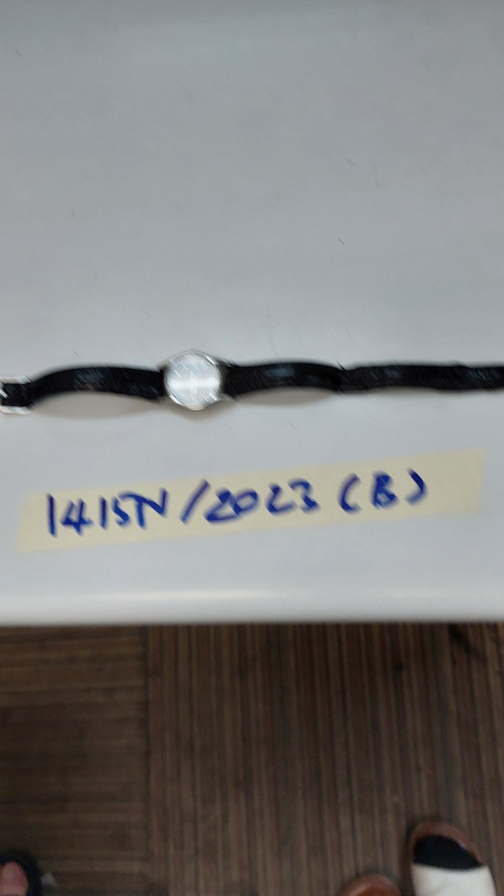 Ngày tiếp nhận: 06/10/2023 Mã hồ sơ: 1418N2023F Mô tả: 01 đồng hồ JG.POLO dây kim loại màu bạc. Vị trí: An ninh soi chiếu quốc tế |