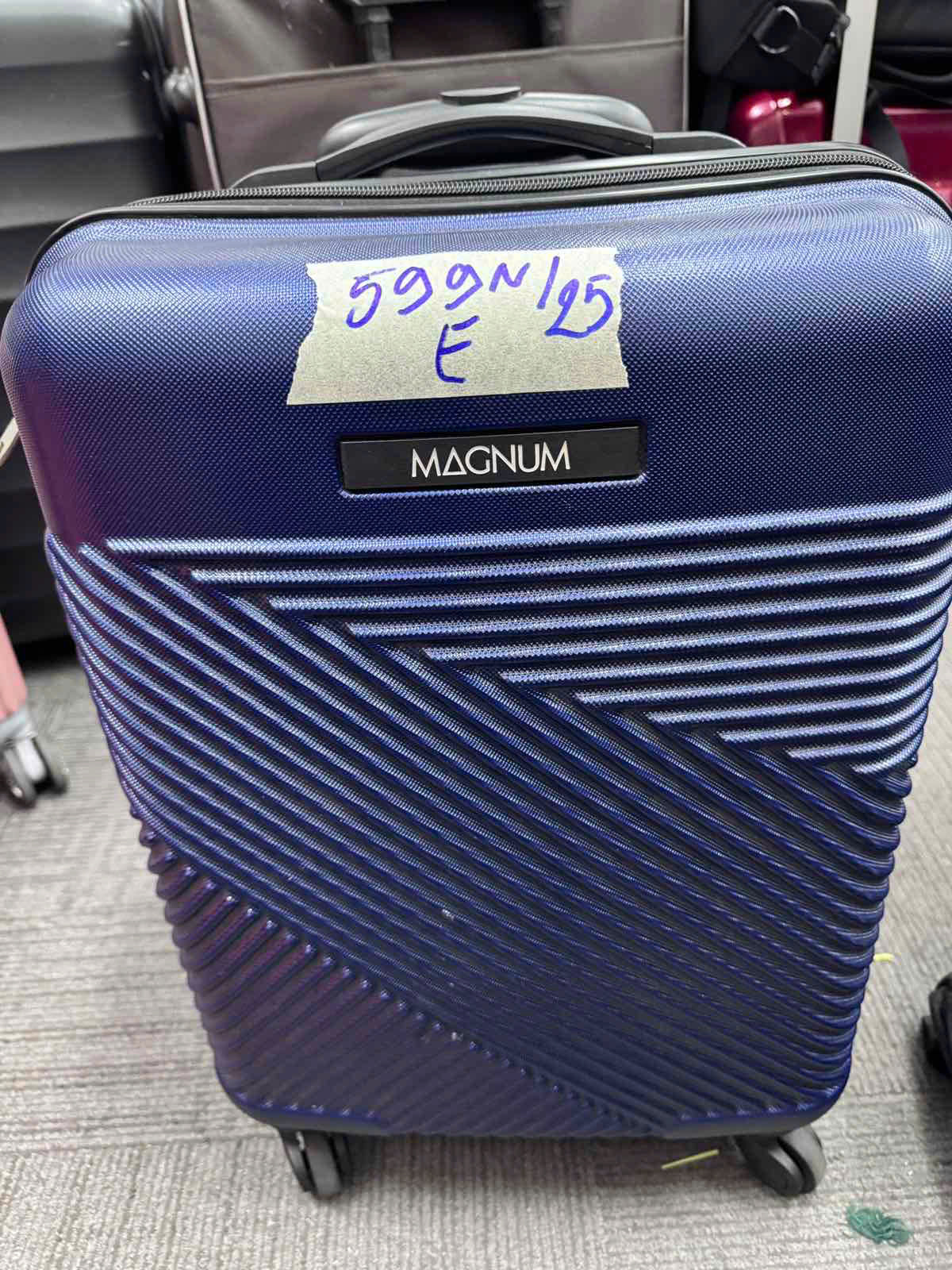 Ngày tiếp nhận: 03/4/2025 Mã hồ sơ: 599N2025E Mô tả: 01 valy nhựa màu xanh than, trên valy có chữ "MAGNUM", bên trong valy có quần áo và thuốc uống, vật dụng cá nhân. |