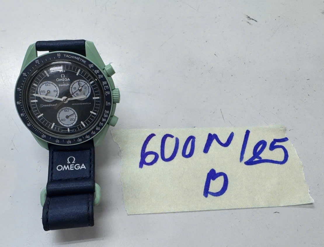 Ngày tiếp nhận: 03/4/2025 Mã hồ sơ: 600N2025B Mô tả: 01 đồng hồ đeo tay màu xanh, mặt đồng hồ hình tròn có logo chữ "OMEGA", dây đồng hồ bằng vải. |