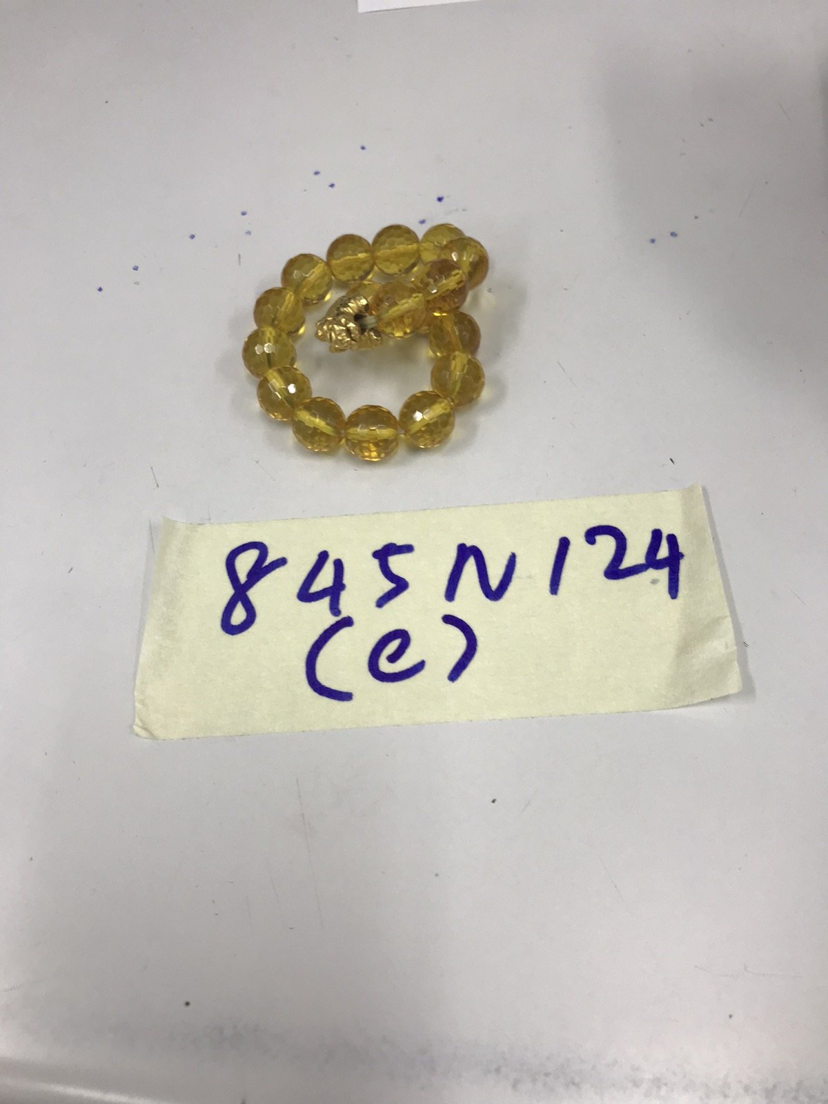 Ngày tiếp nhận: 01/6/2024 Mã hồ sơ: 845N2024C Mô tả: 01 chuỗi đeo tay có họa tiết con rùa và viên kim loại màu vàng. |