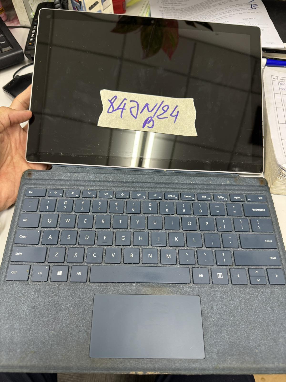 Ngày tiếp nhận: 02/6/2024 Mã hồ sơ: 847N2024B Mô tả: 01 máy tính bảng Microsoft màu xám số ID: C3K1796, kèm theo bàn phím. |
