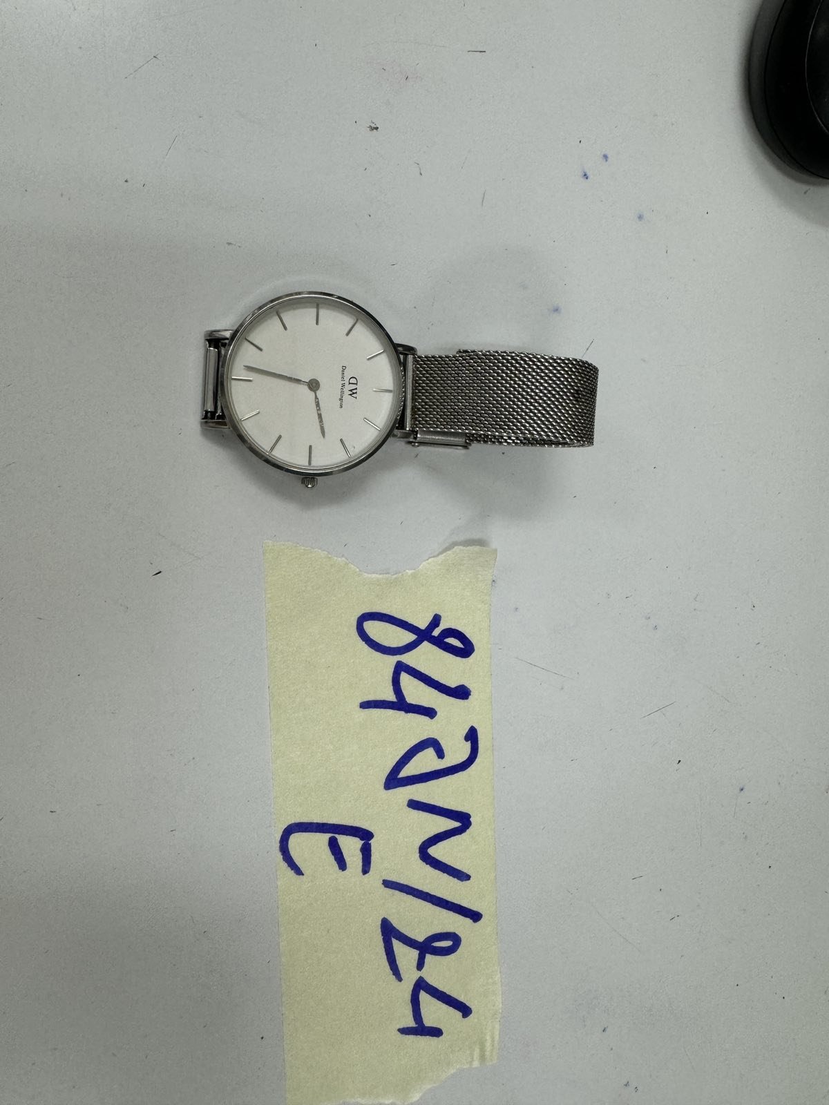 Ngày tiếp nhận: 02/6/2024 Mã hồ sơ: 847N2024E Mô tả: 01 đồng hồ Daniel Wellington mặt tròn dây đeo kim loại màu bạc. |