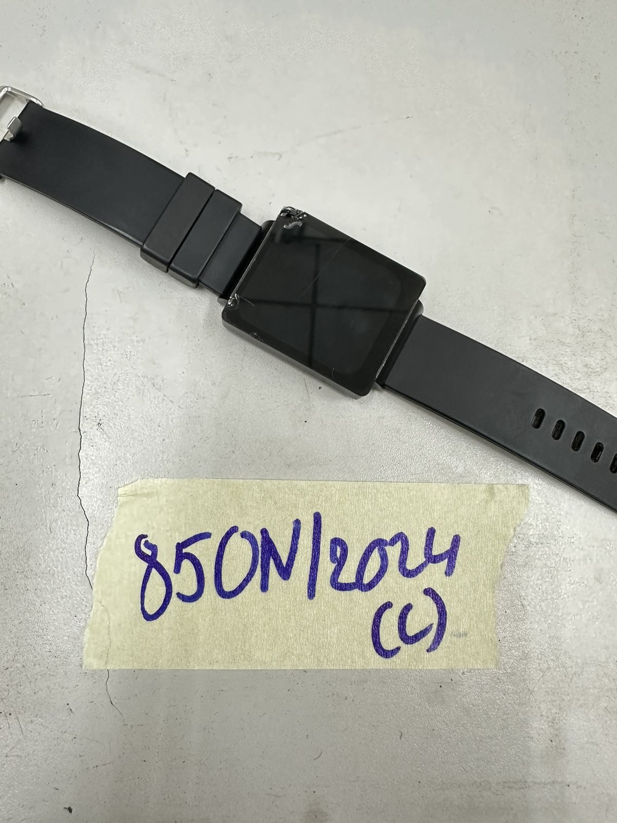 Ngày tiếp nhận: 02/6/2024 Mã hồ sơ: 850N2024C Mô tả: 01 đồng hồ thông minh mặt hình chữ nhật màu đen, mặt trên bị bể, dây đeo cao su màu đen. |