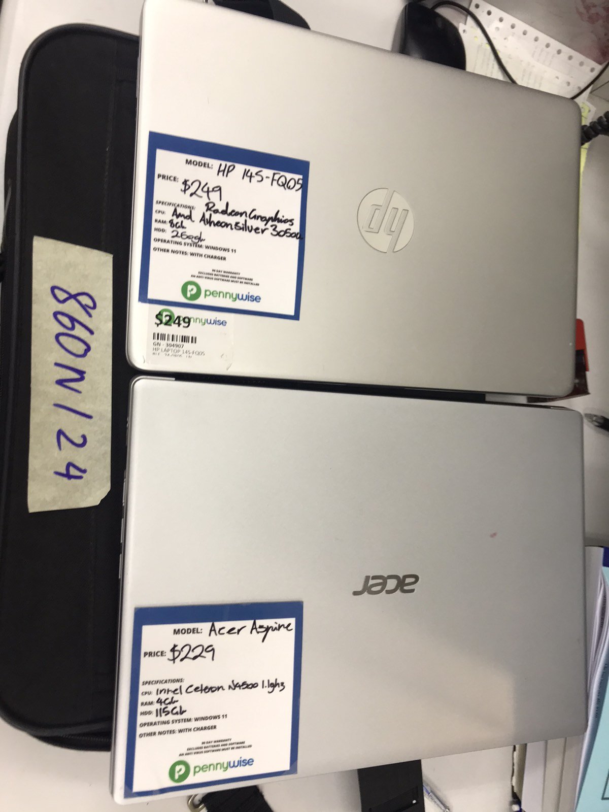 Ngày tiếp nhận: 04/6/2024 Mã hồ sơ: 860N2024 Mô tả: 01 túi xách màu đen bên trong gồm có 01 máy tính xách tay màu xám hiệu HP kèm theo dây sạc, 01 máy tính xách tay màu xám hiệu ACER N20Q1 kèm theo dây sạc đã qua sử dụng. |
