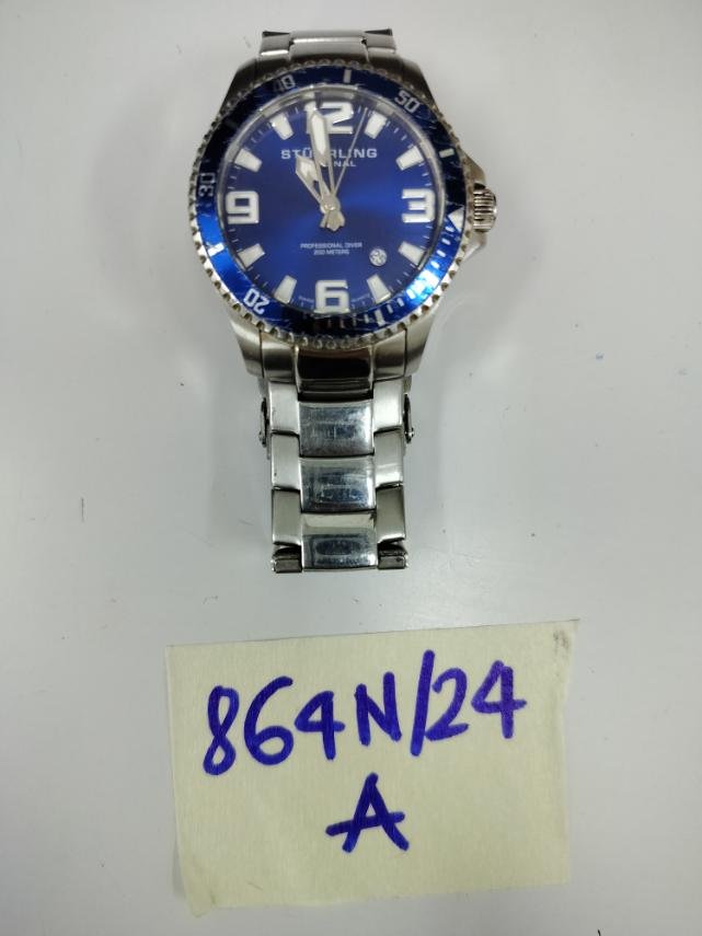 Ngày tiếp nhận: 04/6/2024 Mã hồ sơ: 864N2024A Mô tả: 01 đồng hồ kim loại màu trắng có ghi chữ "STUHRLING ORIGINAL". |