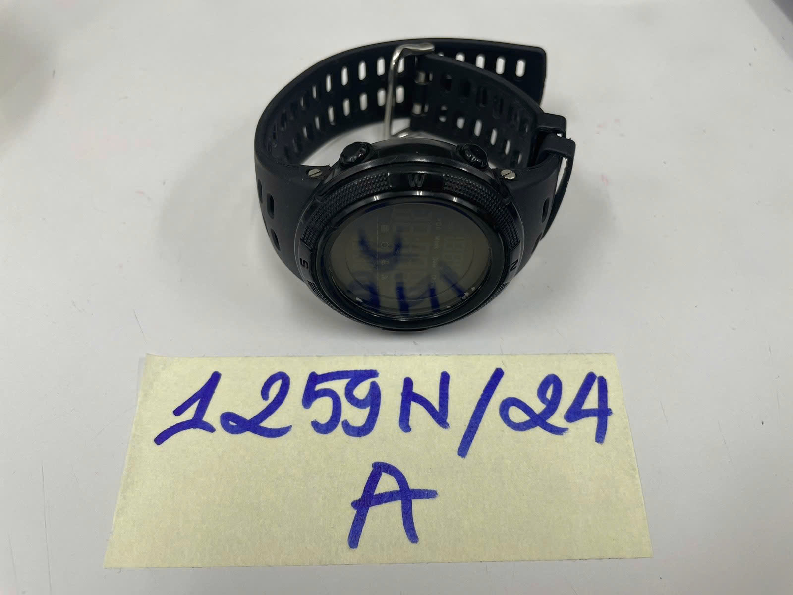 Ngày tiếp nhận: 01/8/2024 Mã hồ sơ: 1259N2024B Mô tả: 01 đồng hồ thông minh hình chữ nhật, dây cao su màu đen có chữ WATCH. |