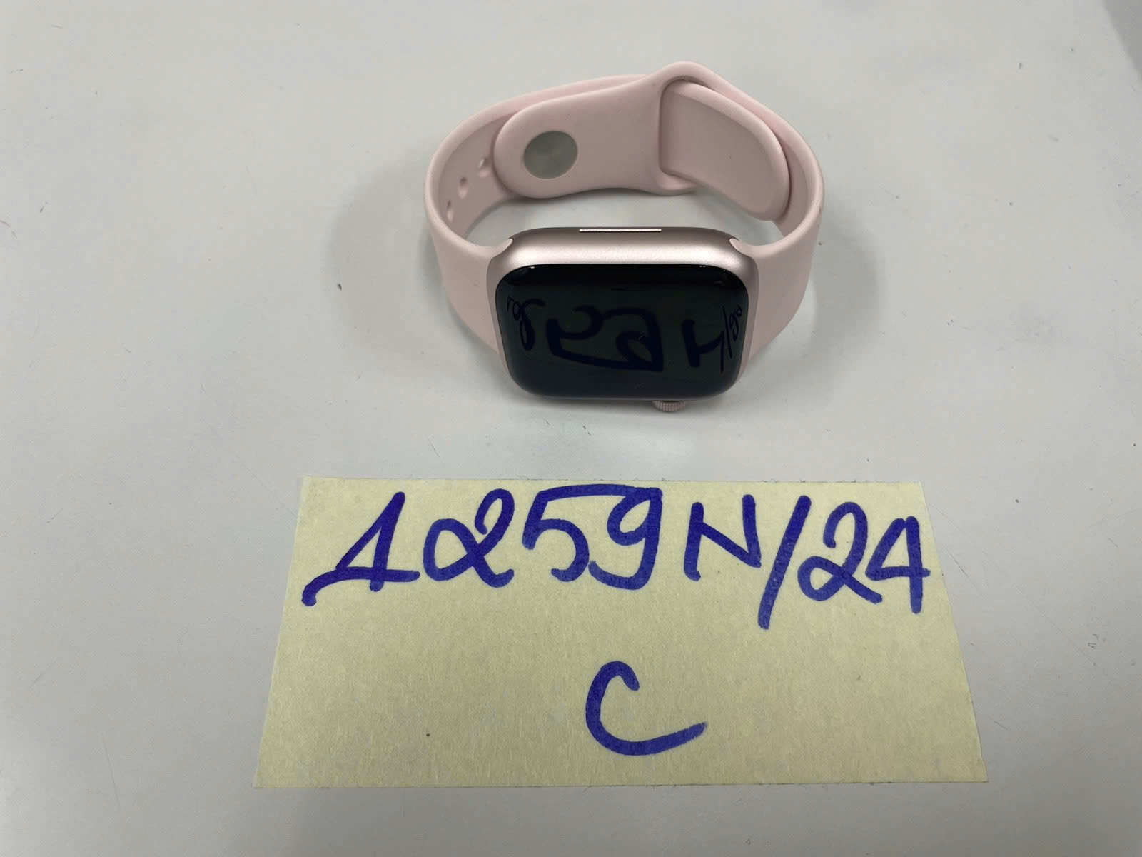 Ngày tiếp nhận: 01/8/2024 Mã hồ sơ: 1259N2024C Mô tả: 01 đồng hồ thông minh hình chữ nhật, dây cao su màu hồng, có chữ WATCH SERIES 9. |