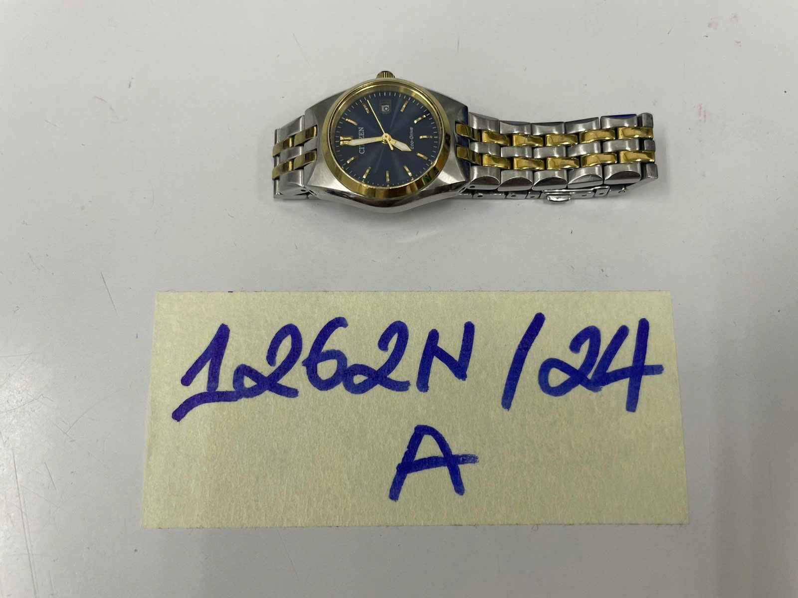 Ngày tiếp nhận: 01/8/2024 Mã hồ sơ: 1262N2024A Mô tả: 01 đồng hồ CITIZEN đây đeo màu bạc, mặt đồng hồ màu đen, mặt sau có dãy số "981310564". |