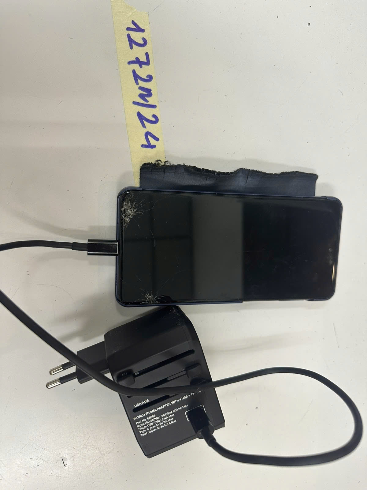 Ngày tiếp nhận: 02/8/2024 Mã hồ sơ: 1272N2024 Mô tả: 01 điện thoại cảm ứng có chữ SAMSUNG màu xanh vỡ màn hình và 01 bộ sạc màu đen. |