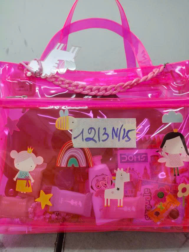 Ngày tiếp nhận: 04/7/2025 Mã hồ sơ: 1213N2025 Mô tả: 01 túi xách nhựa màu hồng trong suốt bên trong có đồ dùng học tập trẻ em. |