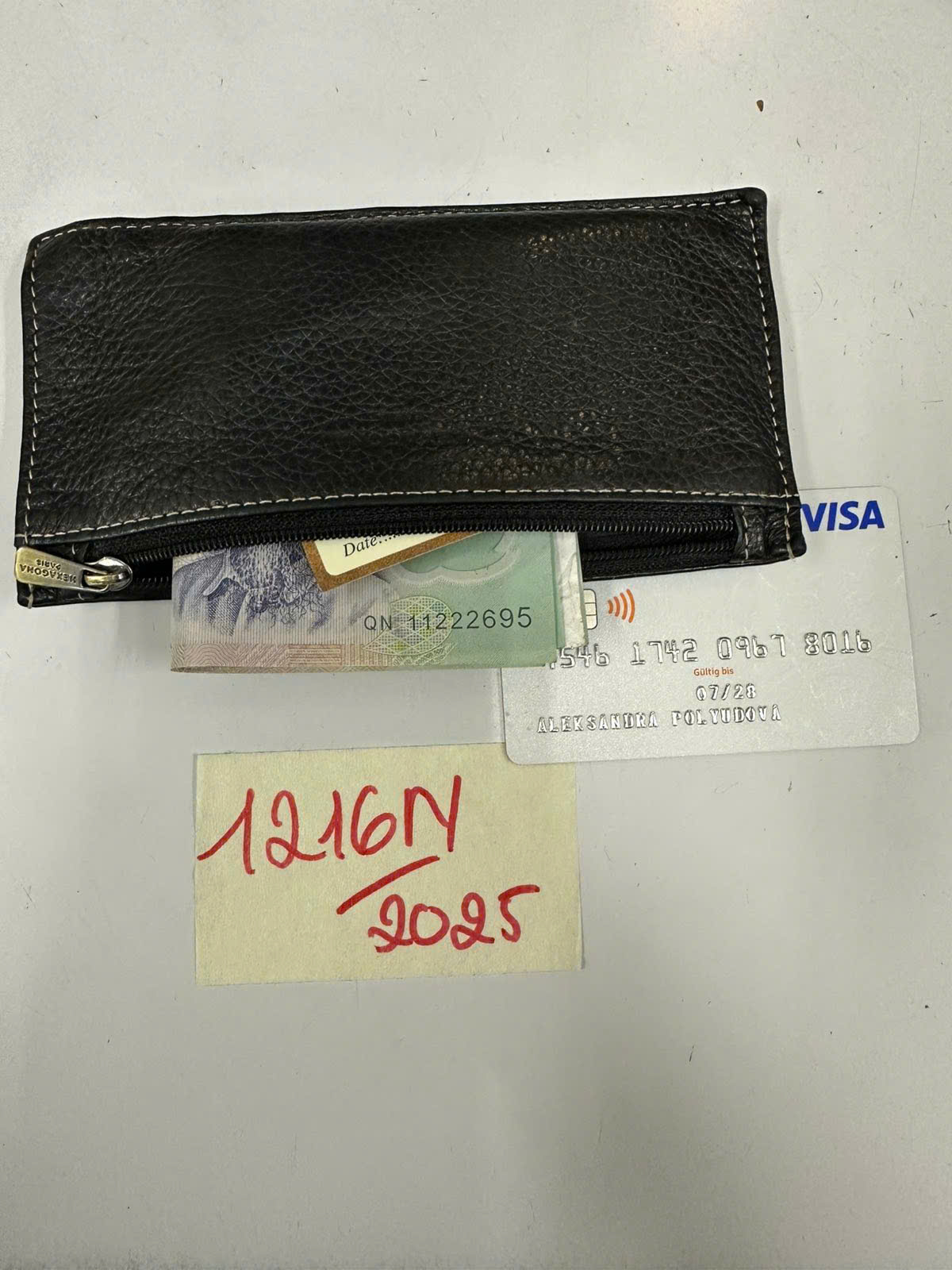 Ngày tiếp nhận: 04/7/2025 Mã hồ sơ: 1216N2025 Mô tả: 01 ví da màu đen có: 04 tờ 500.000vnd, 02 tờ 200.000vnd, 01 tờ 20.000vnd, 02 tờ 10.000vnd, 01 tờ 1.000vnd và thẻ ngân hàng tên ALEKSANDRA POLYUDOVA. |