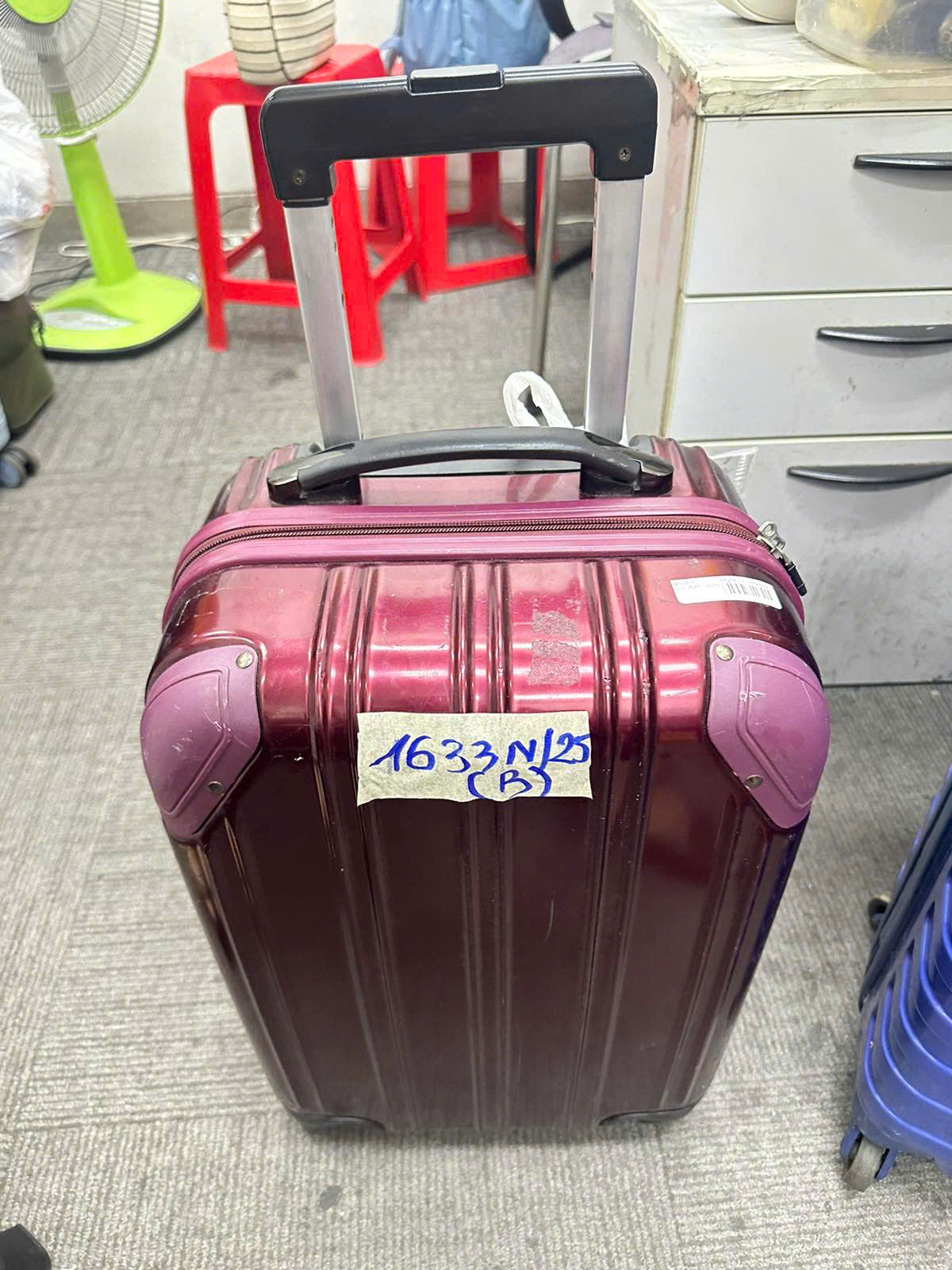 Ngày tiếp nhận: 05/9/2025 Mã hồ sơ: 1633N2025A Mô tả: 01 valy nhựa xanh bên trong: quần áo, đồ ăn. |