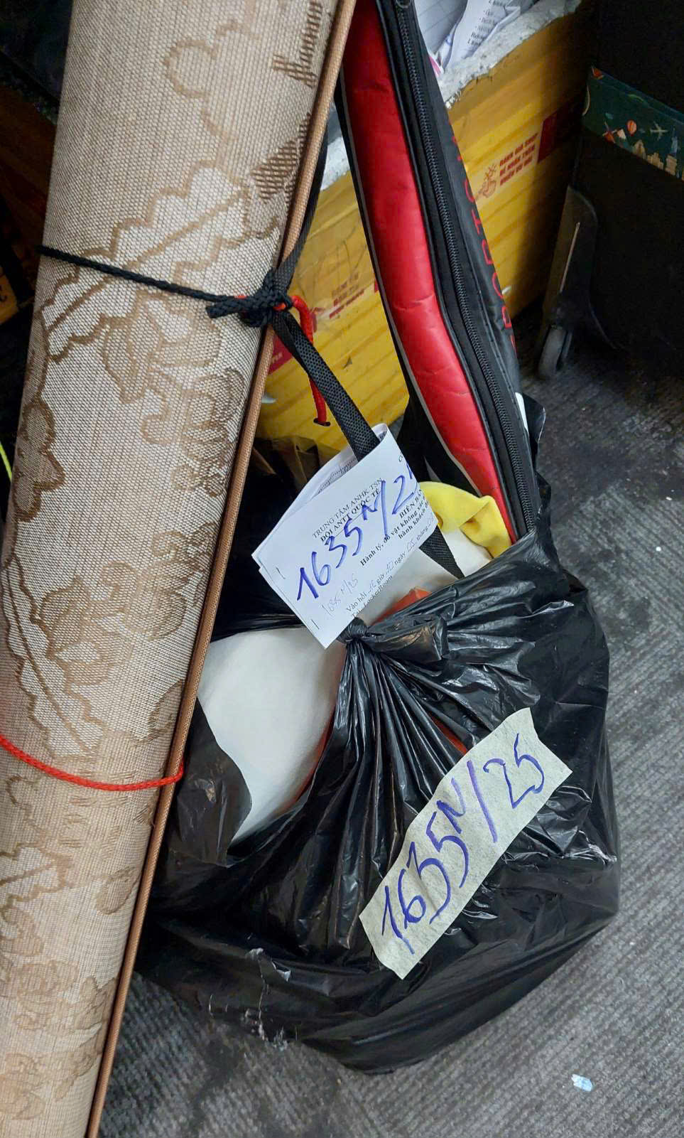 Ngày tiếp nhận: 05/9/2025 Mã hồ sơ: 1635N2025 Mô tả: 01 cuộn chiếu, 01 vợt cầu lông, đồ dùng cá nhân. |