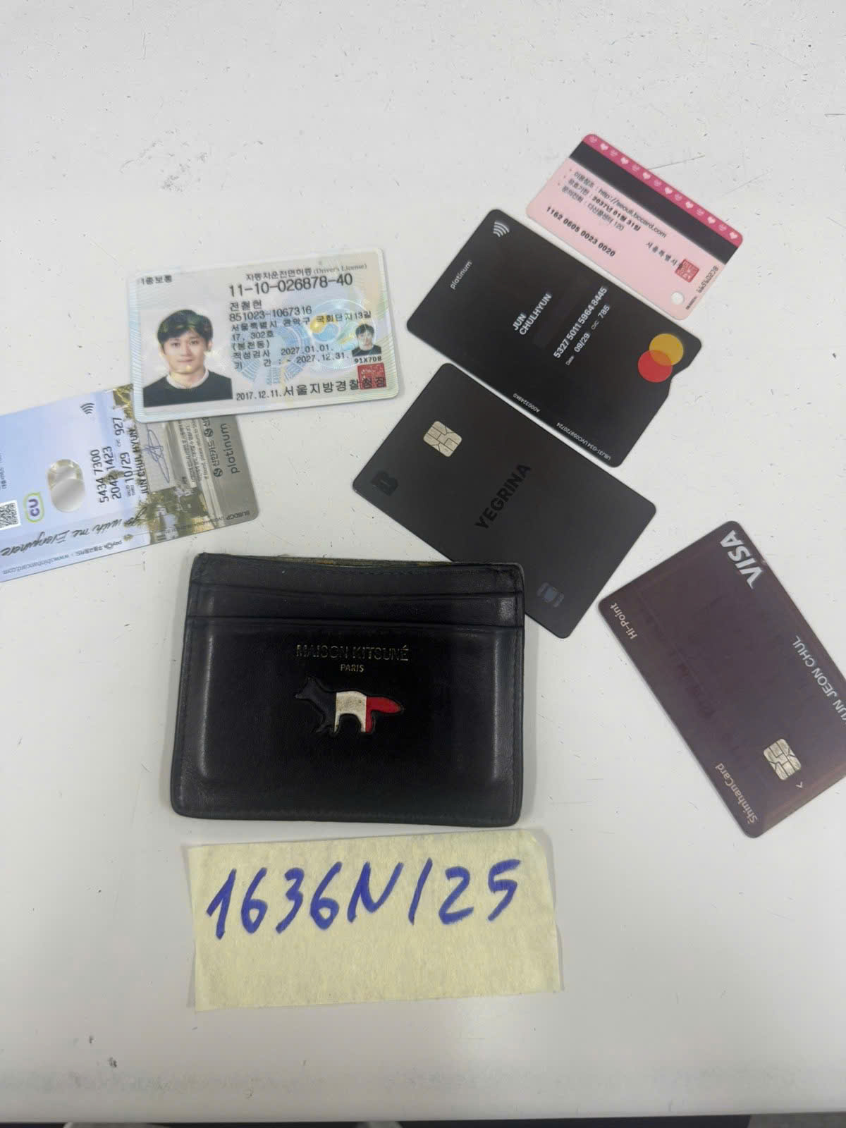 Ngày tiếp nhận: 06/9/2025 Mã hồ sơ: 1636N2025 Mô tả: 01 ví da màu đen bên trong có 1 bằng lái xe 11-10-026878-40 và 5 thẻ nhựa các loại. |