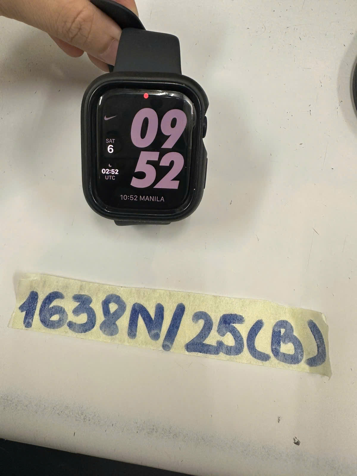Ngày tiếp nhận: 06/9/2025 Mã hồ sơ: 1638N2025B Mô tả: 01 đồng hồ thông minh bằng kim loại màu đen mang nhãn hiệu "APPLE WATCH" kèm vỏ nhựa cứng màu đen bên ngoài và dây đeo cao su cùng màu. |