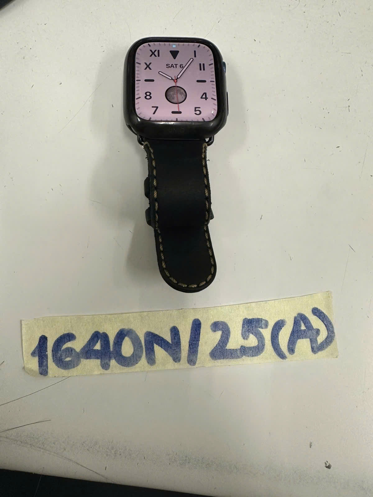 Ngày tiếp nhận: 06/9/2025 Mã hồ sơ: 1640N2025A Mô tả: 01 đồng hồ thông minh màu đen, mặt hình vuông, dây da màu đen, mặt sau có chữ "APPLE WATCH SERIES 7 45MM". |