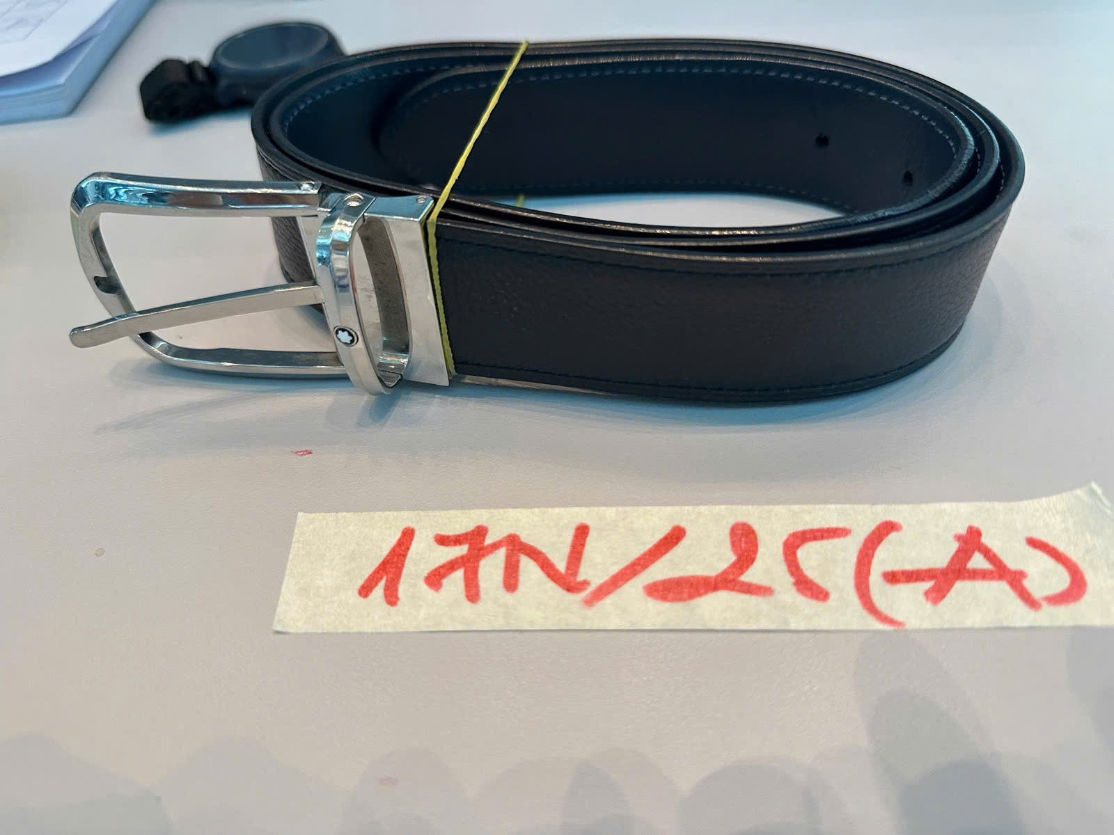Ngày tiếp nhận: 03/9/2025 Mã hồ sơ: 17N2025A Mô tả: 01 dây thắt lưng màu xanh đen có ghi chữ MONTBLANC. |
