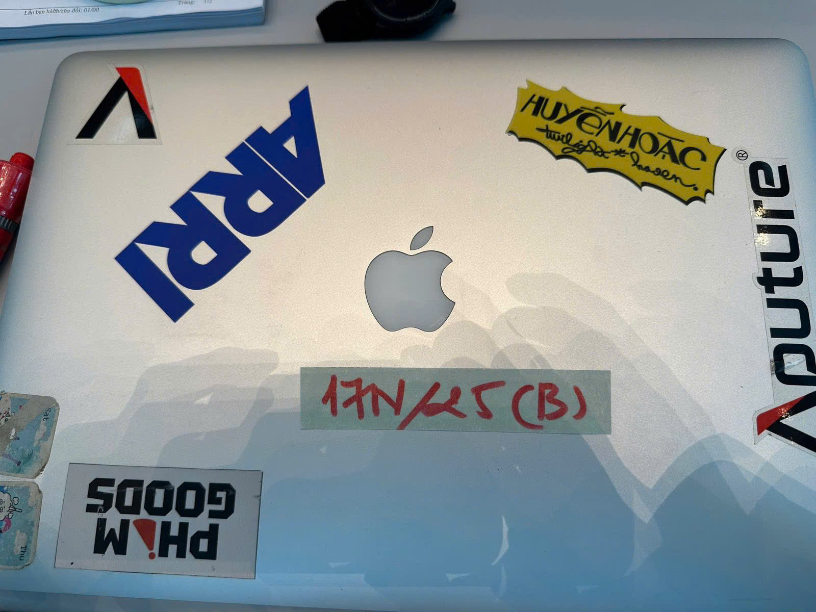 Ngày tiếp nhận: 03/9/2025 Mã hồ sơ: 17N2025B Mô tả: 01 máy tính xách tay màu trắng bạc trên mặt có hình trái táo, đằng sau có chữ Macbook Pro. |