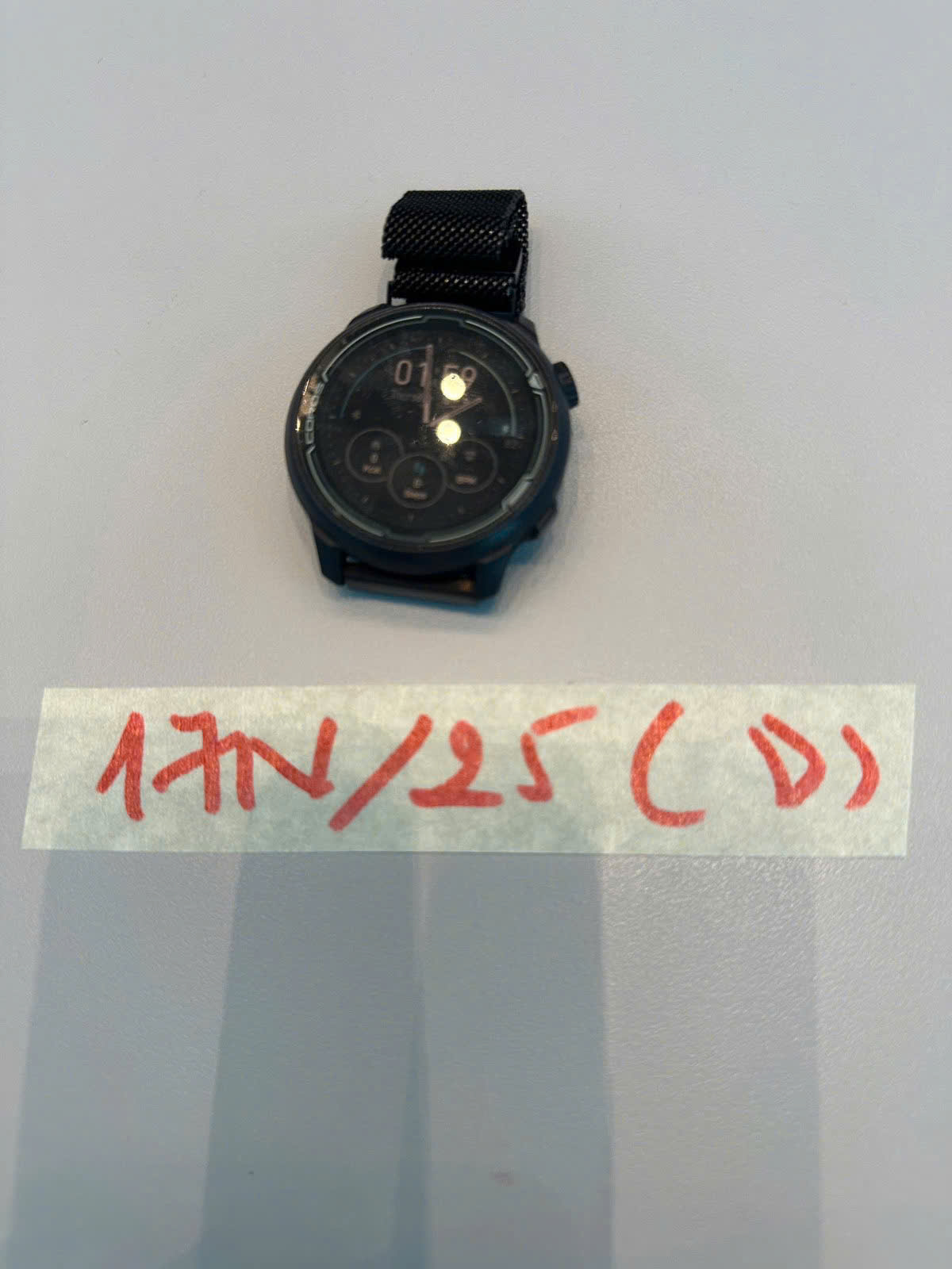 Ngày tiếp nhận: 06/9/2025 Mã hồ sơ: 1638N2025A Mô tả: 01 đồng hồ thông minh mặt tròn bằng kim loại màu đen có chữ "ENDURO" kèm dây đeo màu đen bằng vải. |