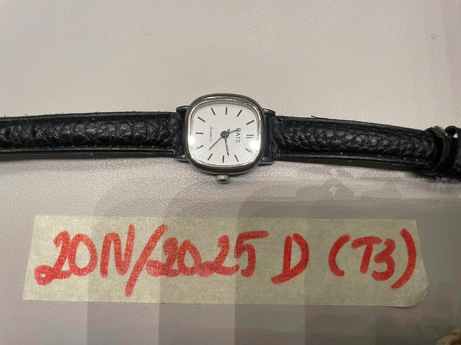 Ngày tiếp nhận: 05/9/2025 Mã hồ sơ: 20N2025D Mô tả: 01 đồng hồ dây đen, mặt kim loại trắng, có chữ RATE. |
