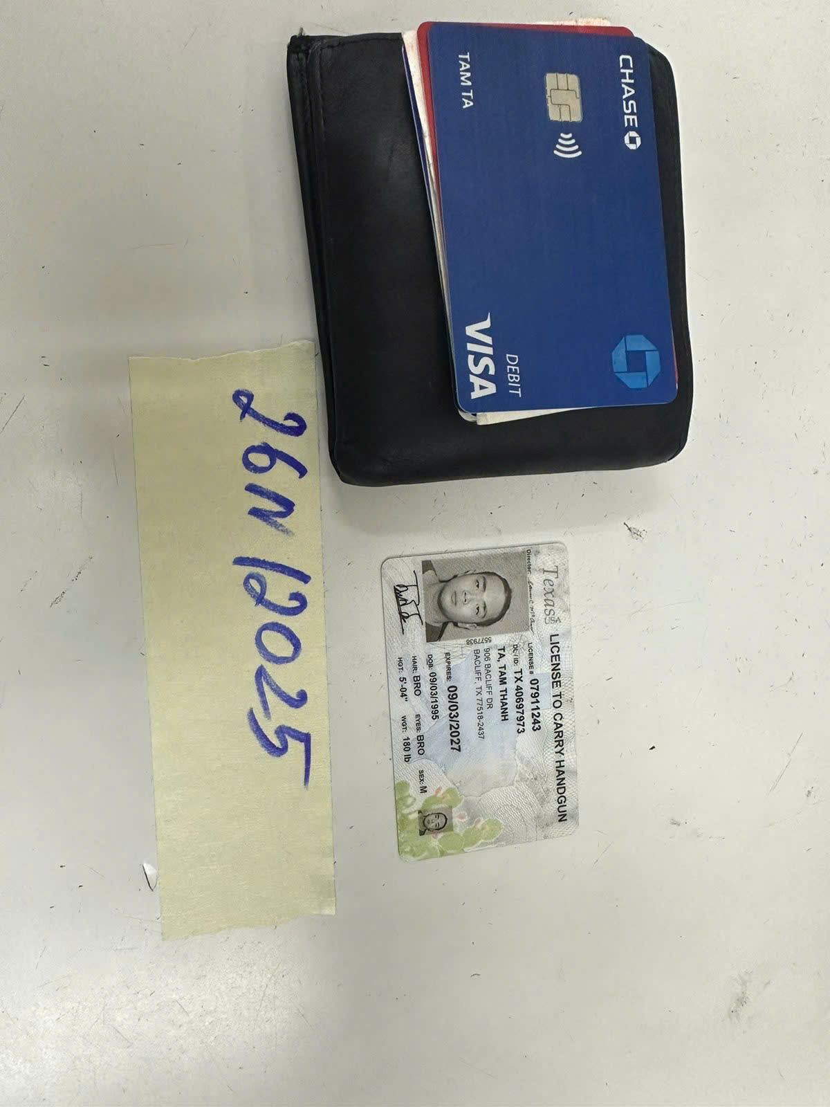 Ngày tiếp nhận: 04/01/2025 Mã hồ sơ: 26N2025 Mô tả: 01 ví cầm tay màu đen có thẻ VISA và giấy tờ tên TA TAM THANH. |