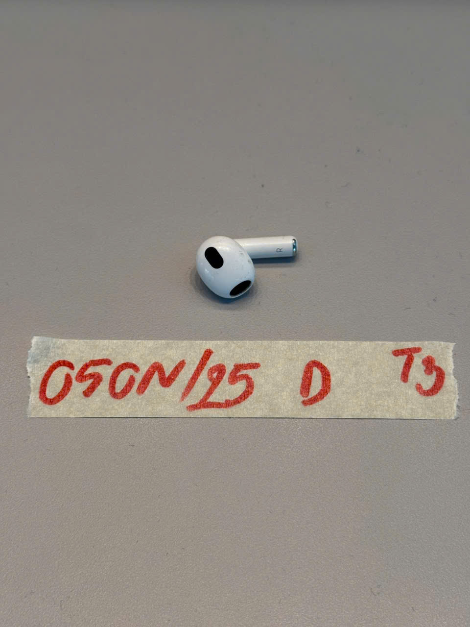 Ngày tiếp nhận: 05/10/2025 Mã hồ sơ: 50N2025D Mô tả: 01 tai nghe không dây bên phải màu trắng. |