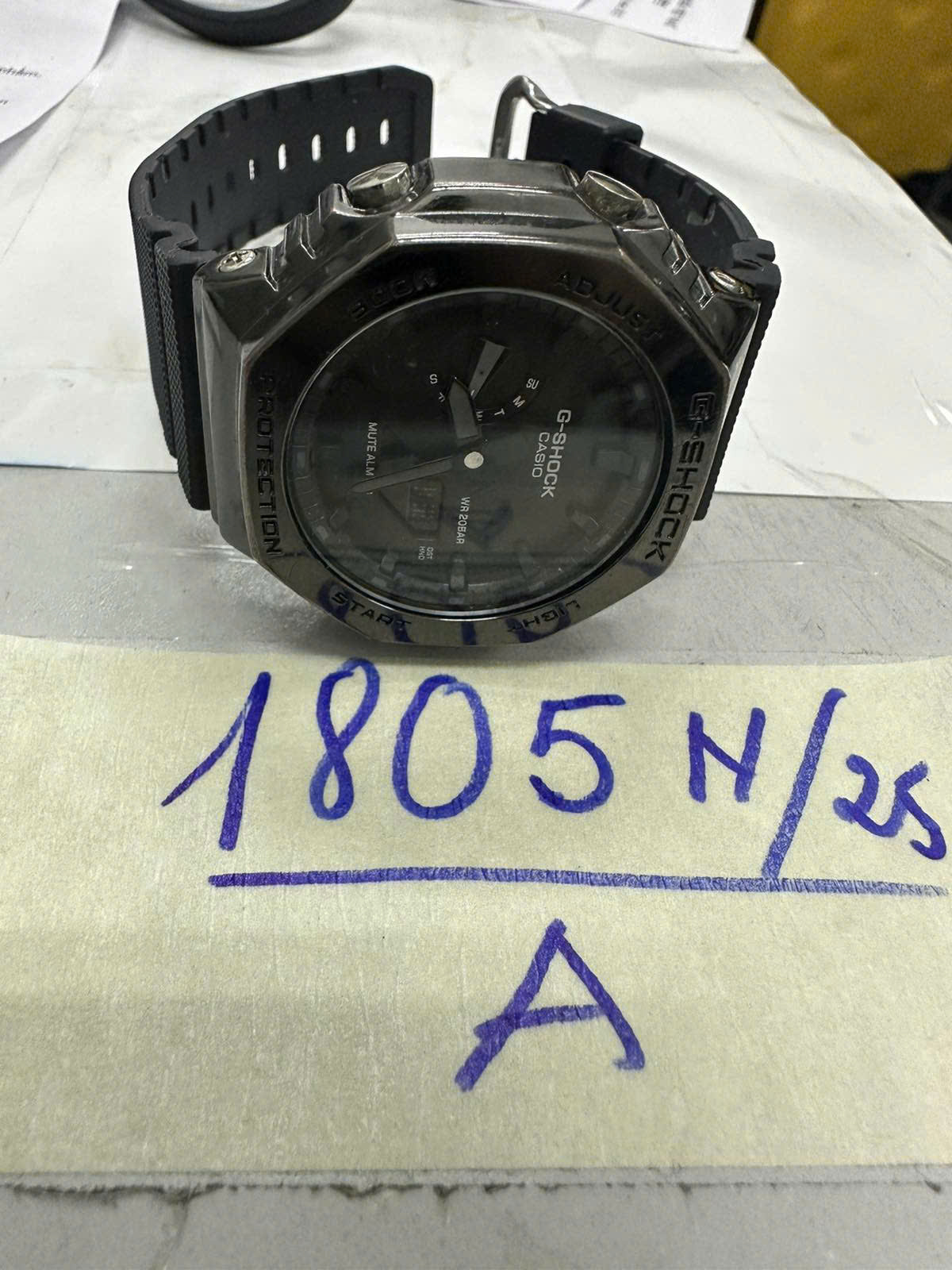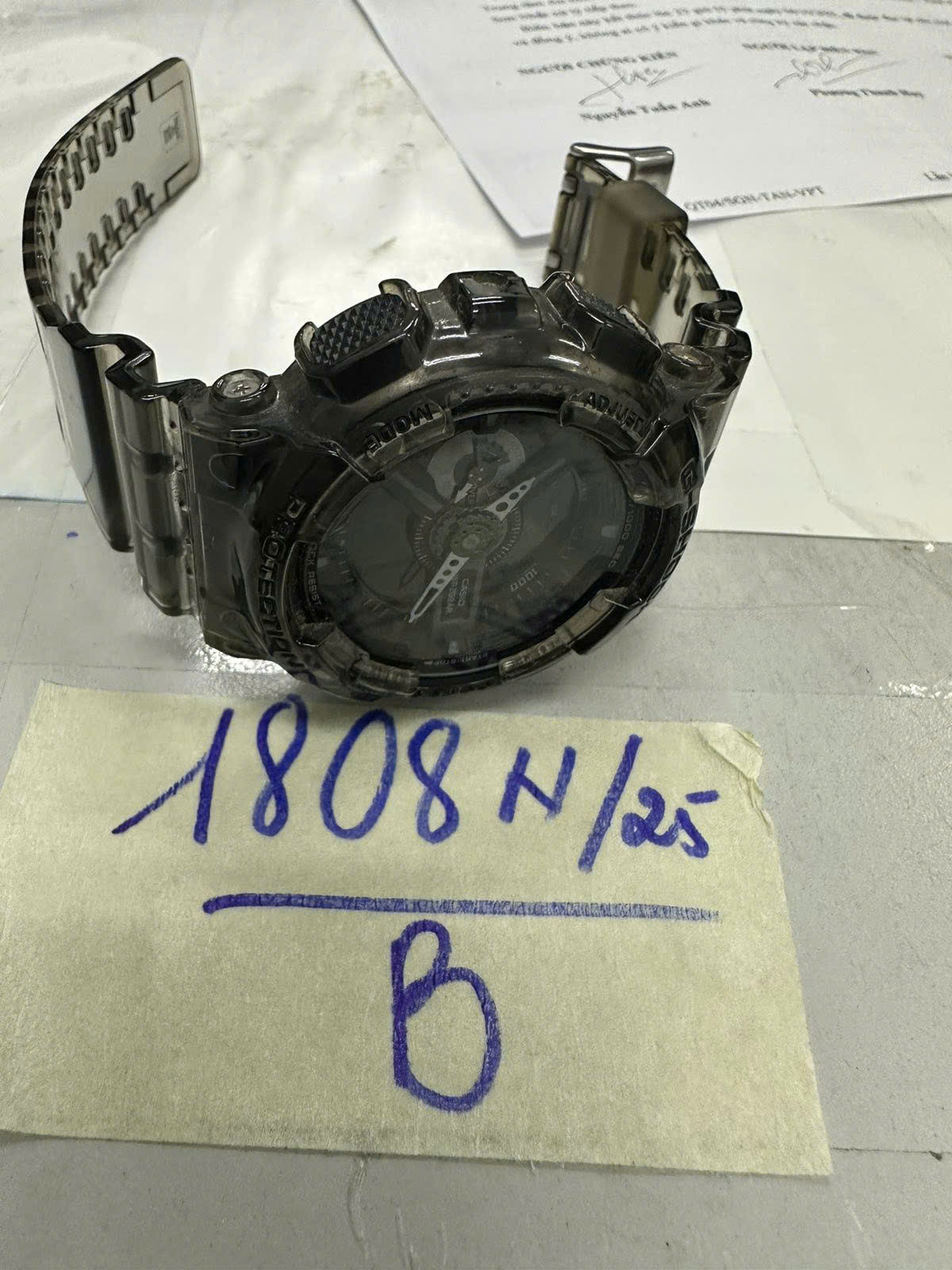 Ngày tiếp nhận: 06/10/2025 Mã hồ sơ: 1805N2025A Mô tả: 01 đồng hồ dây nhựa đen, mặt đen. Có chữ CASIO GA-2100. |