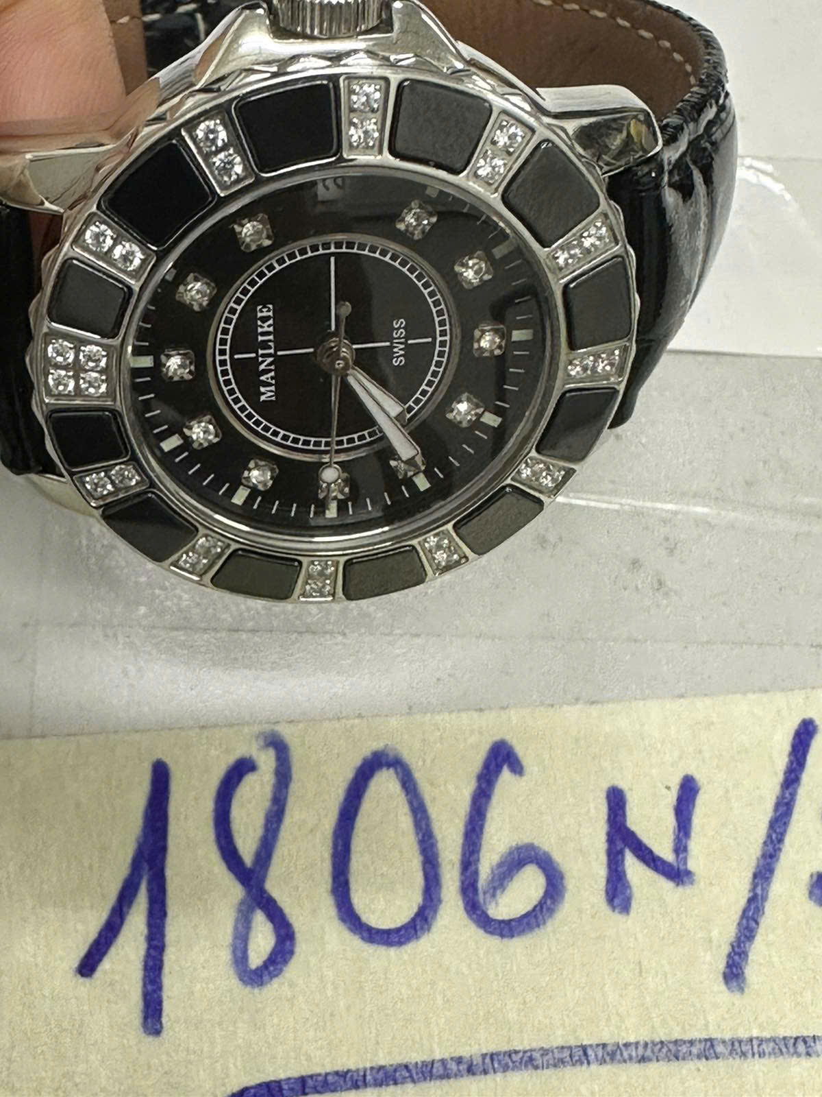 Ngày tiếp nhận: 06/10/2025 Mã hồ sơ: 1806N2025 Mô tả: 01 đồng hồ màu đen có chữ MANLIKE, mặt đính đá, dây da màu đen. |
