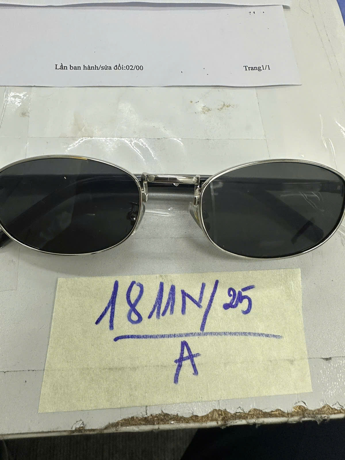Ngày tiếp nhận: 06/10/2025 Mã hồ sơ: 1811N2025A Mô tả: 01 mắt kính gọng kim loại màu đen có chữ PRADA. |
