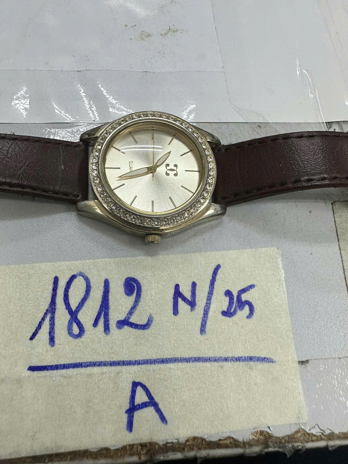 Ngày tiếp nhận: 06/10/2025 Mã hồ sơ: 1812N2025A Mô tả: 01 đồng hồ mặt tròn bằng kim loại màu vàng có chữ QUARTZ, dây da màu nâu. |