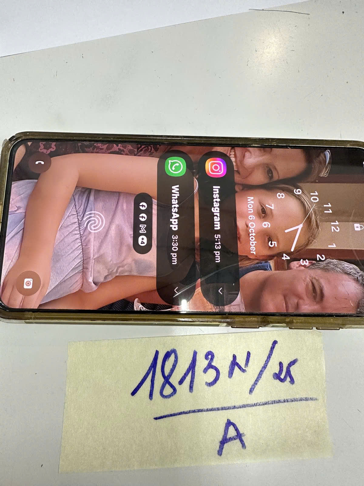 Ngày tiếp nhận: 06/10/2025 Mã hồ sơ: 1813N2025A Mô tả: 01 điện thoại di động màu xanh có chữ SAMSUNG. |