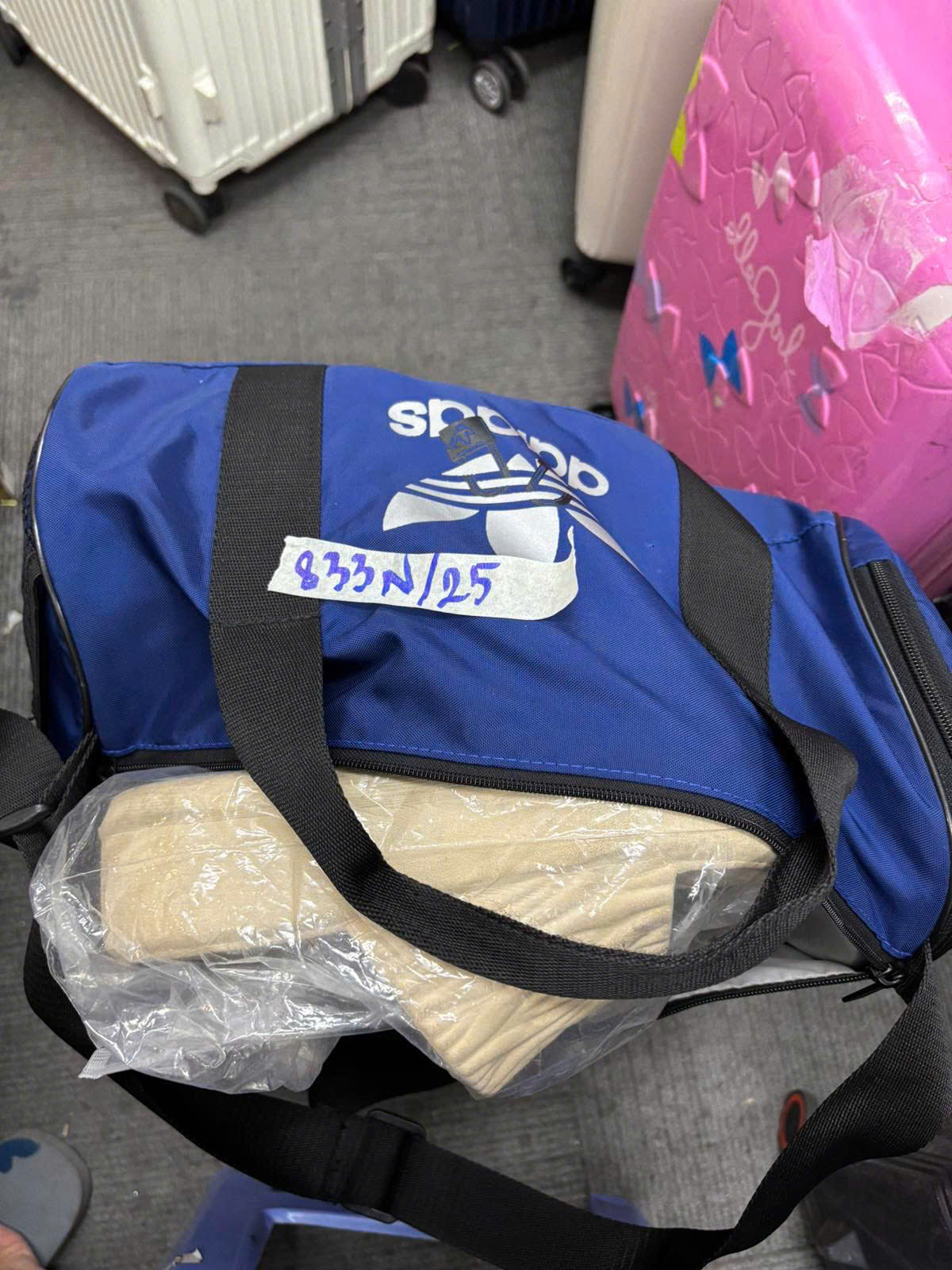Ngày tiếp nhận: 05/5/2025 Mã hồ sơ: 833N2025 Mô tả: 01 túi xách vải màu xanh có 04 dép cao su qua sử dụng. |