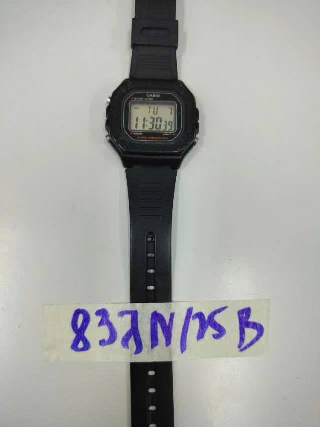 Ngày tiếp nhận: 06/5/2025 Mã hồ sơ: 837N2025B Mô tả: 01 đồng hồ điện tử có logo chữ CASIO màu đen, dây cao su màu đen. |