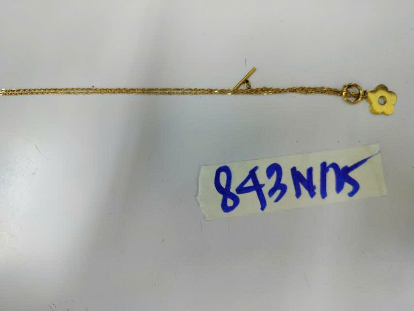 Ngày tiếp nhận: 06/5/2025 Mã hồ sơ: 843N2025 Mô tả: 01 sợi dây kim loại màu vàng. Đsd. |