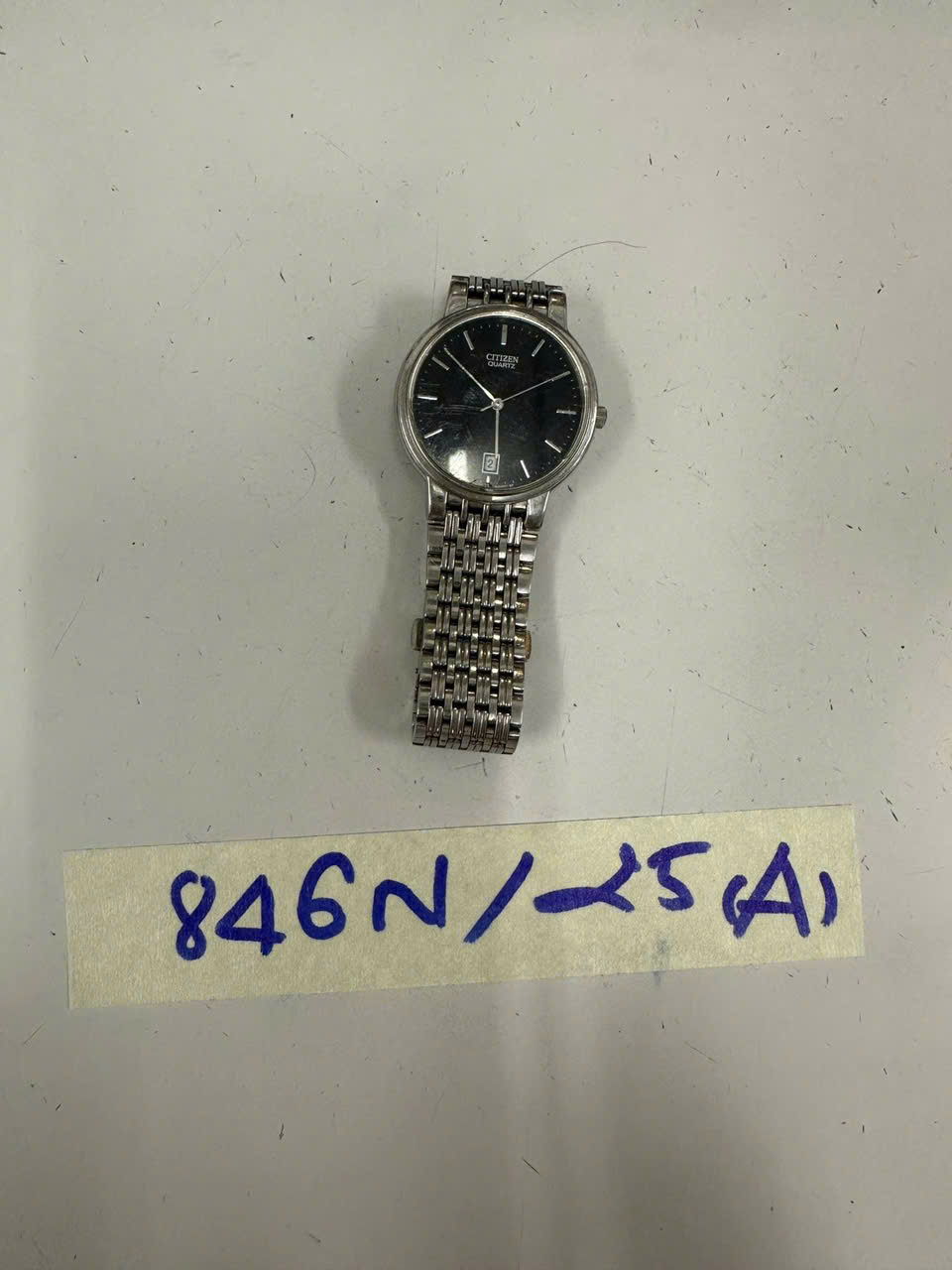 Ngày tiếp nhận: 06/5/2025 Mã hồ sơ: 846N2025A Mô tả: 01 đồng hồ bằng kim loại màu bạc có chữ CITIZEN QUATZ. |