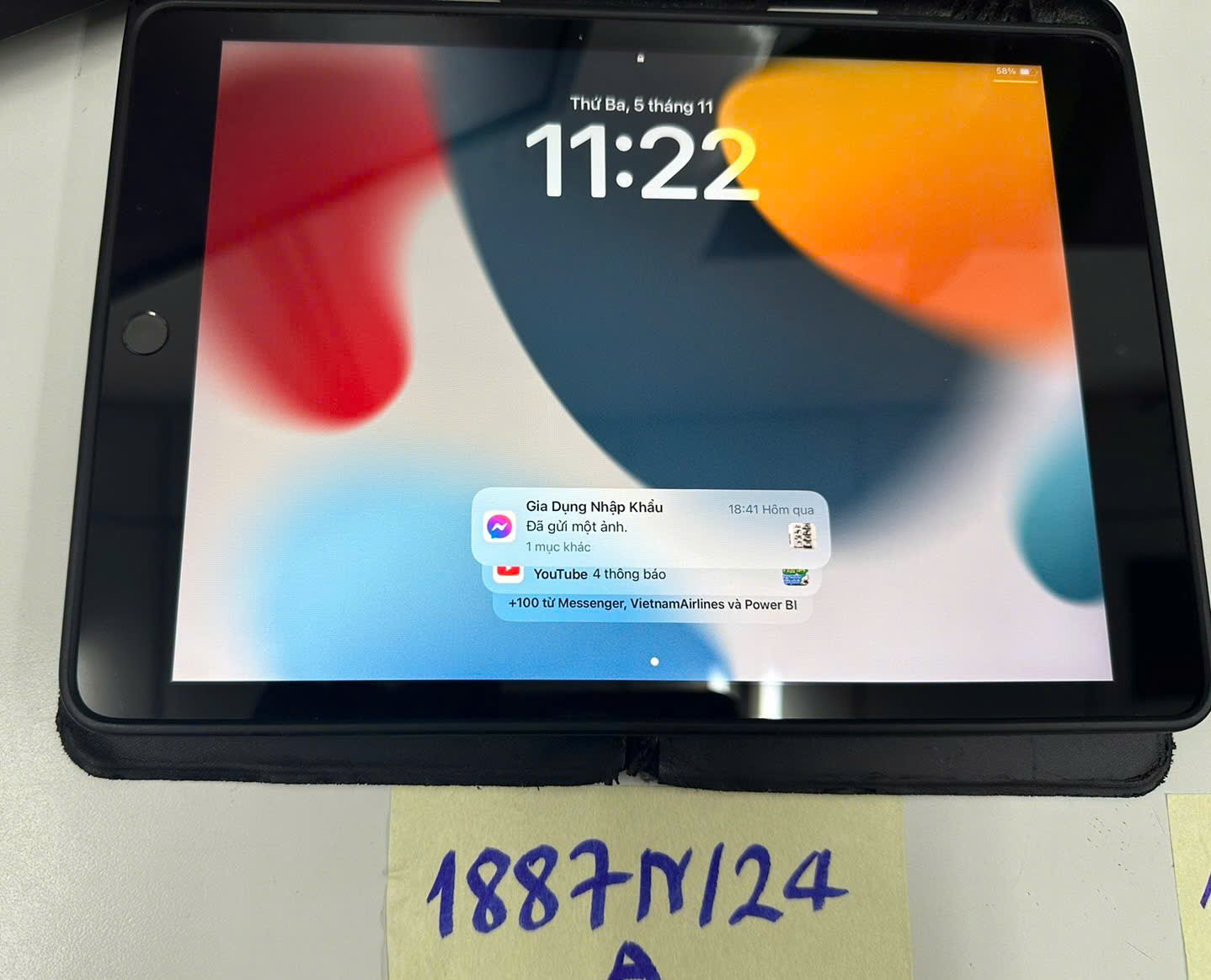 Ngày tiếp nhận: 05/11/2024 Mã hồ sơ: 1887N2024A Mô tả: 01 máy tính bảng IPAD màu đen serial: RGQ272VFM6, vỏ bảo vệ bằng nhựa màu đen. |