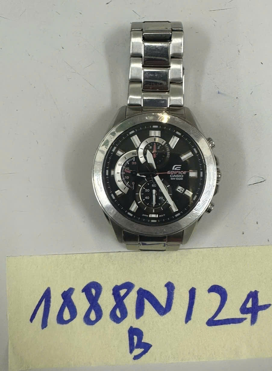 Ngày tiếp nhận: 05/11/2024 Mã hồ sơ: 1888N2024B Mô tả: 01 đồng hồ dây kim loại mặt tròn màu đen hiệu EDIFICE CASIO. |