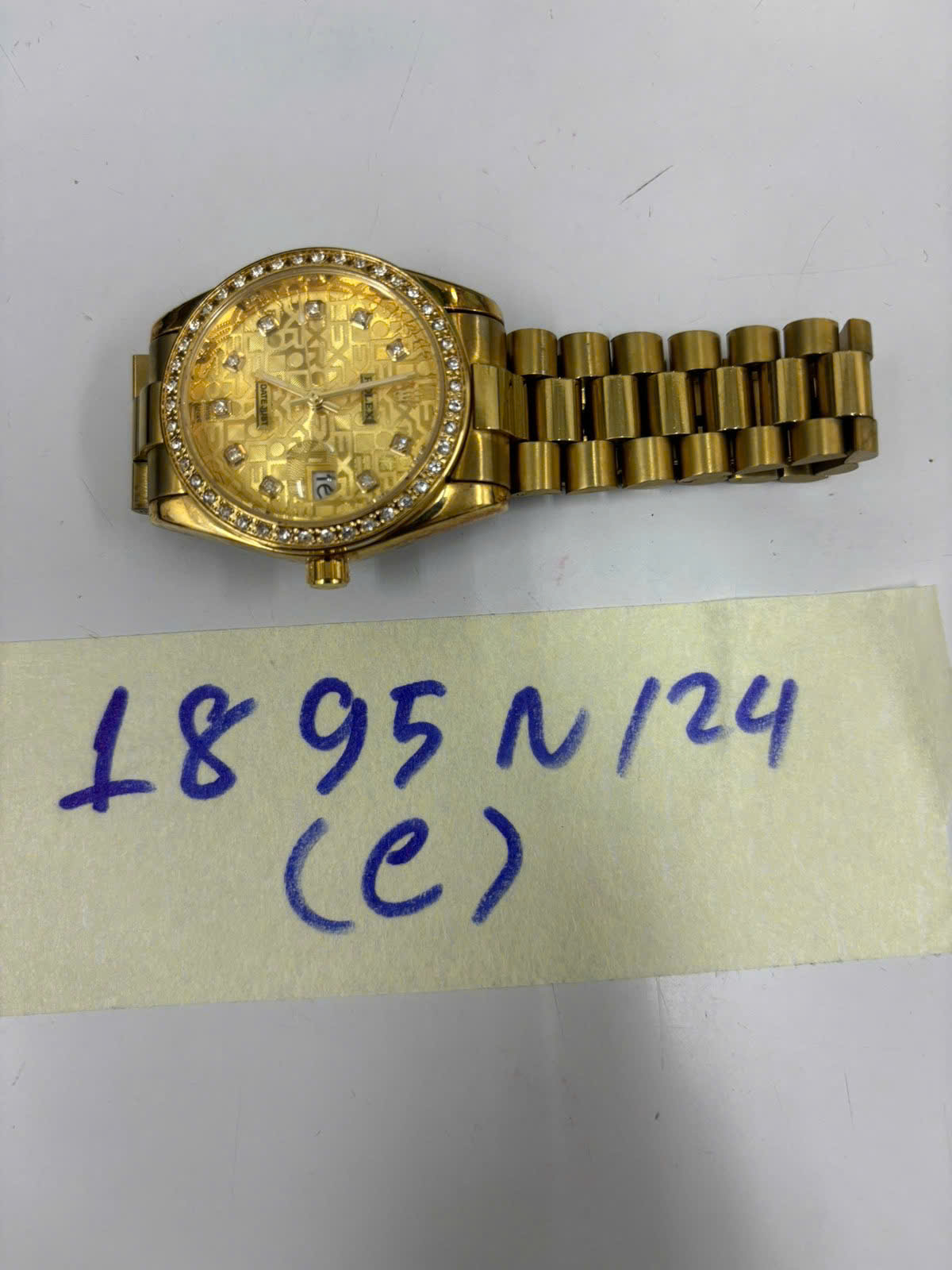 Ngày tiếp nhận: 05/11/2024 Mã hồ sơ: 1895N2024C Mô tả: 01 đồng hồ kim loại màu vàng, mặt có chữ ROLEX. |