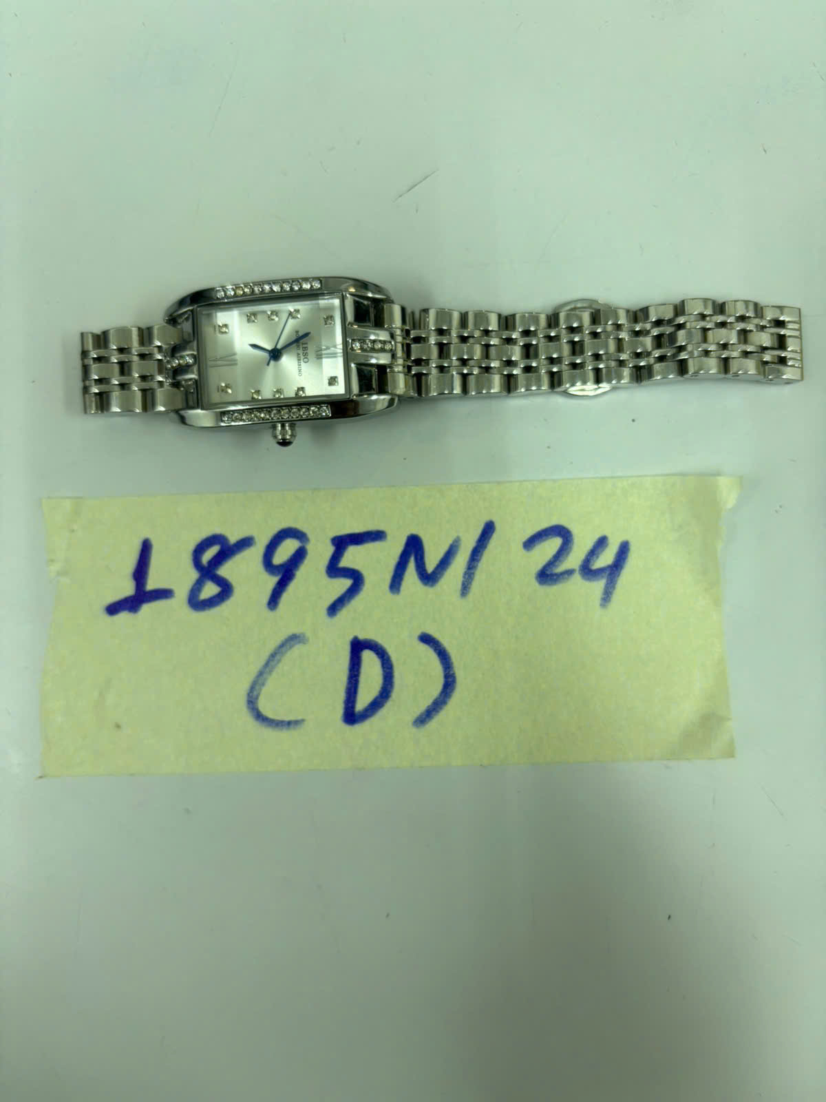 Ngày tiếp nhận: 05/11/2024 Mã hồ sơ: 1895N2024D Mô tả: 01 đồng hồ kim loại màu trắng, mặt vuông có chữ IBSO. |