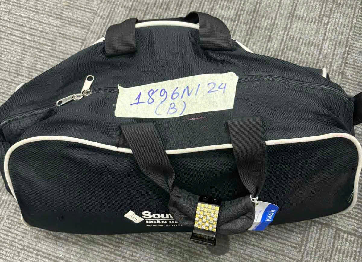 Ngày tiếp nhận: 06/11/2024 Mã hồ sơ: 1896N2024B Mô tả: 01 túi xách bằng vải màu đen bên trong có: quần áo và đồ cá nhân qua sử dụng. |