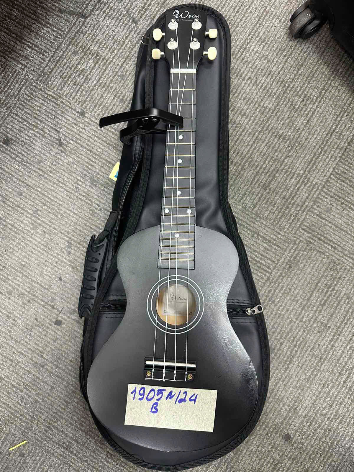 Ngày tiếp nhận: 07/11/2024 Mã hồ sơ: 1905N2024B Mô tả: 01 đàn Ukulele màu đen có chữ "WOIM World of Instrumental Music", dựng treng túi da màu đen, kèm theo 01 dụng cụ kẹp capo màu đen. |