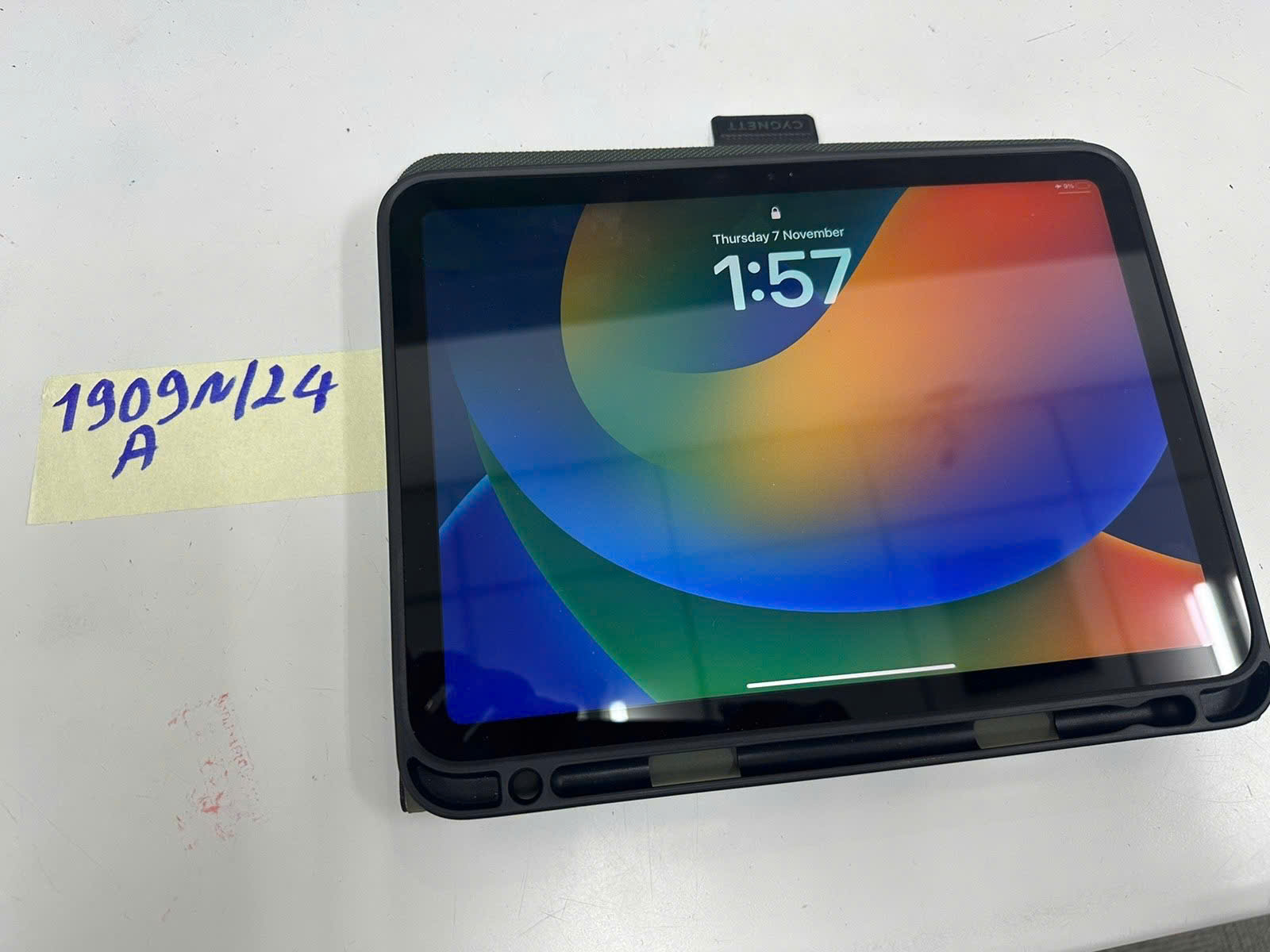 Ngày tiếp nhận: 07/11/2024 Mã hồ sơ: 1909N2024A Mô tả: 01 Máy tính bảng apple màu hồng, có số Serial Number: M3 WK6QLXW0, kèm ốp lưng màu xám đen có chữ CYGNETT. |