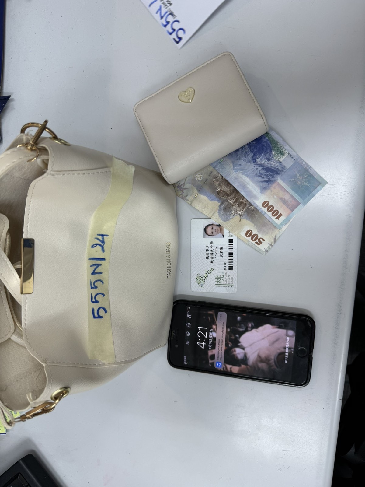Ngày tiếp nhận: 05/4/2024 điện thoại di động Iphone 7 plus cũ, không khóa màn hình màu đen, ốp lưng màu đen, sạc và dây. 1500 đài tệ, 04 thẻ nhựa có chữ nước ngoài, 01 thẻ có hình ảnh và chữ Đài Loan và đồ cá nhân. |