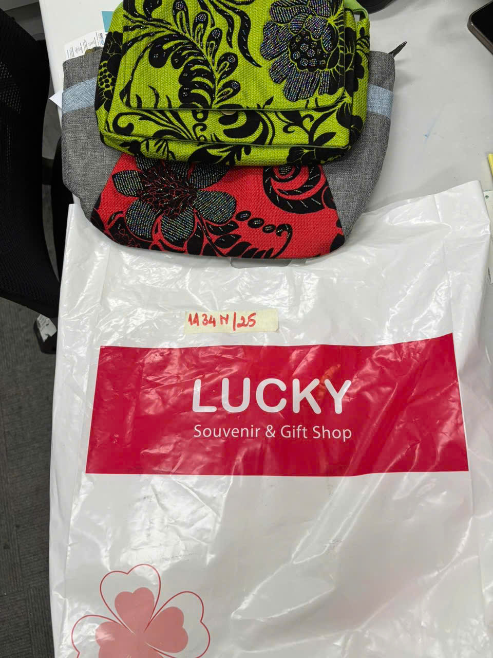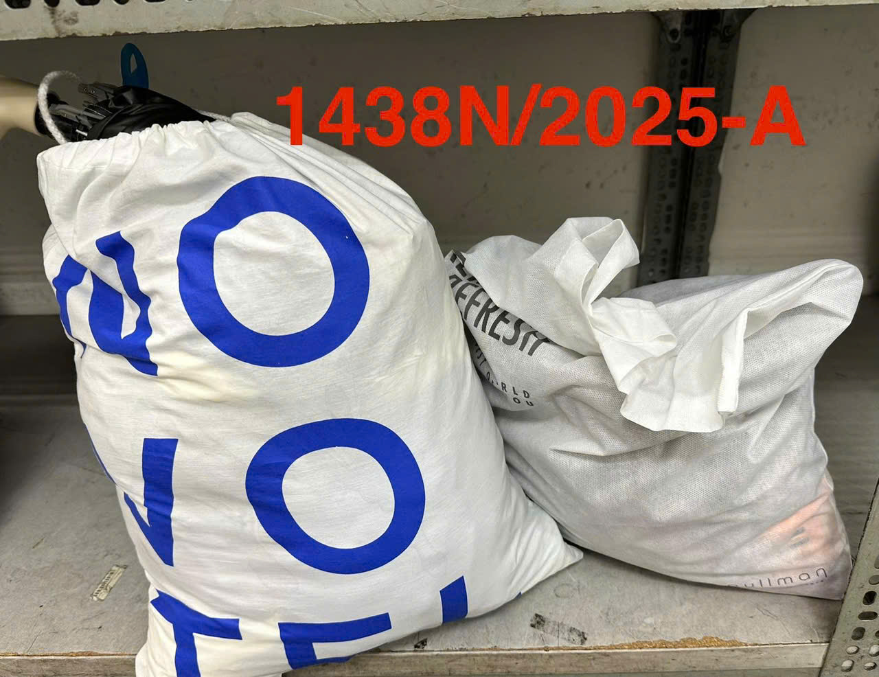 Ngày tiếp nhận: 05/8/2025 Mã hồ sơ: 1434N2025 Mô tả: 01 Túi nhựa màu trắng, bên trong có chứa 01 túi vải màu xanh lá, 01 túi vải màu đỏ và xám. |