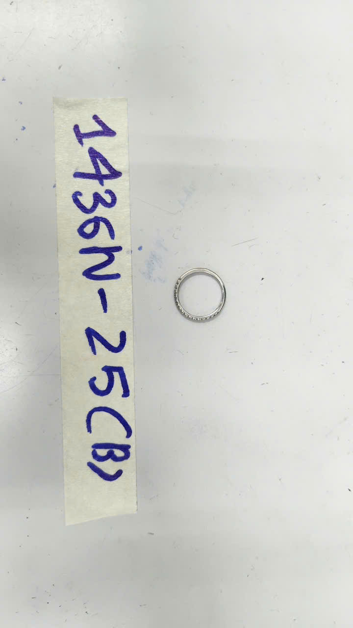 Ngày tiếp nhận: 05/8/2025 Mã hồ sơ: 1436N2025B Mô tả: 01 Nhẫn kim loại màu trắng có đính hạt màu trắng. |
