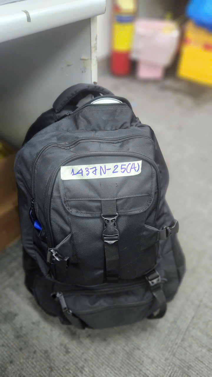 Ngày tiếp nhận: 06/8/2025 Mã hồ sơ: 1437N2025A Mô tả: 01 Ba lô vải màu đen qua sử dụng. |